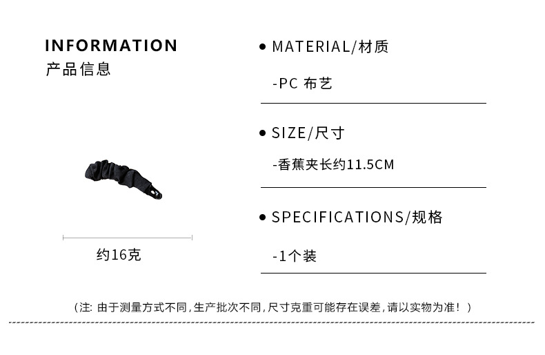 textured satin banana clip-black
