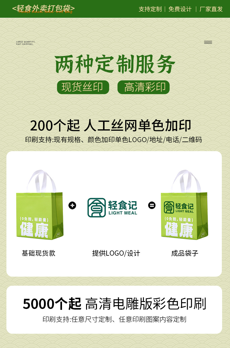 healthy and light life; medium size: height 25x width 23x side 14; non-woven coated