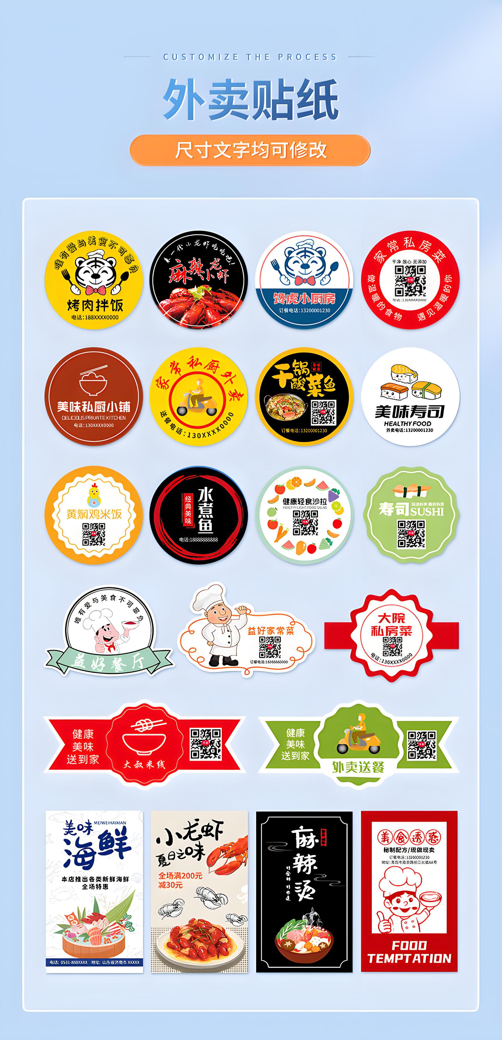 Customized self-adhesive stickers for takeaway advertising, PVC waterproof circular labels, seal labels, irregular roll transparent trade marks.
