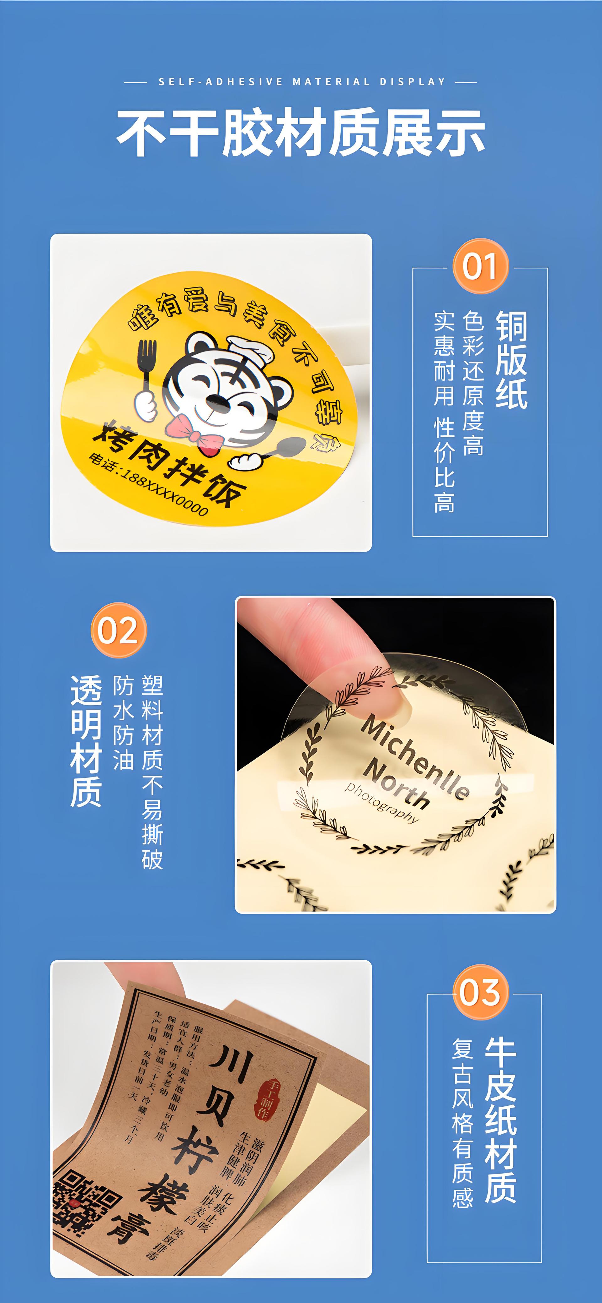 Customized adhesive stickers, printing small ads, sticker labels, custom quality certificates, transparent PVC trademark stickers.