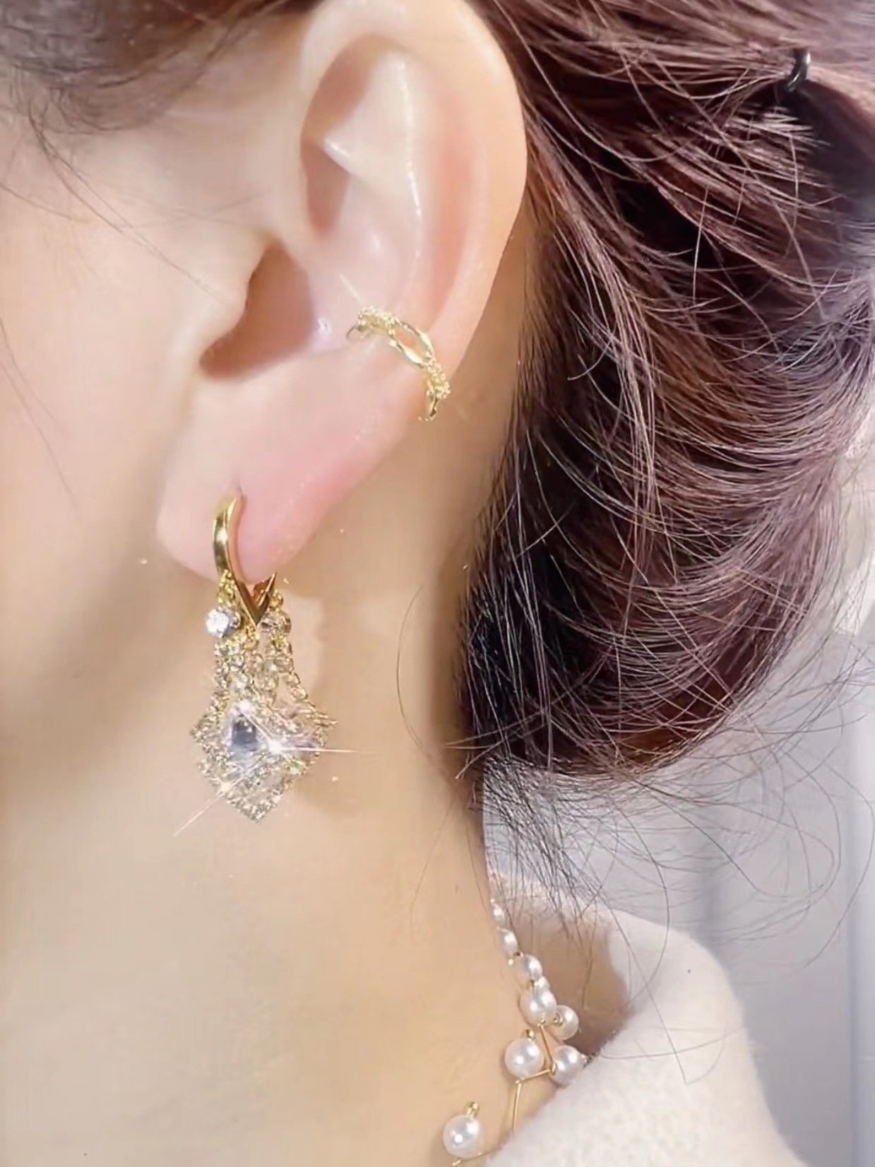 elegant zircon rhombus earrings fashion high sense ear clip 2023 new internet celebrity light luxury all-match earrings