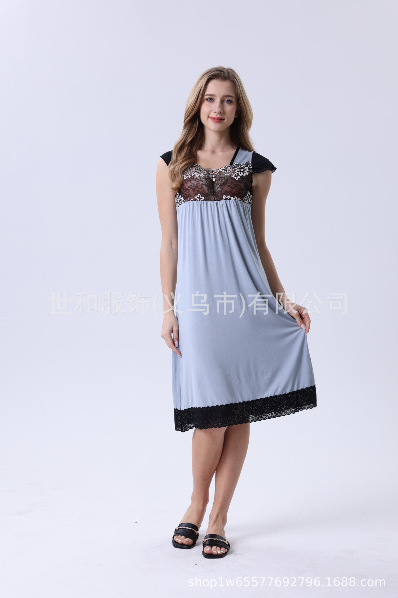 spring and summer new modal rayon women's foreign trade lace stitching solid color wide shoulder nightdress