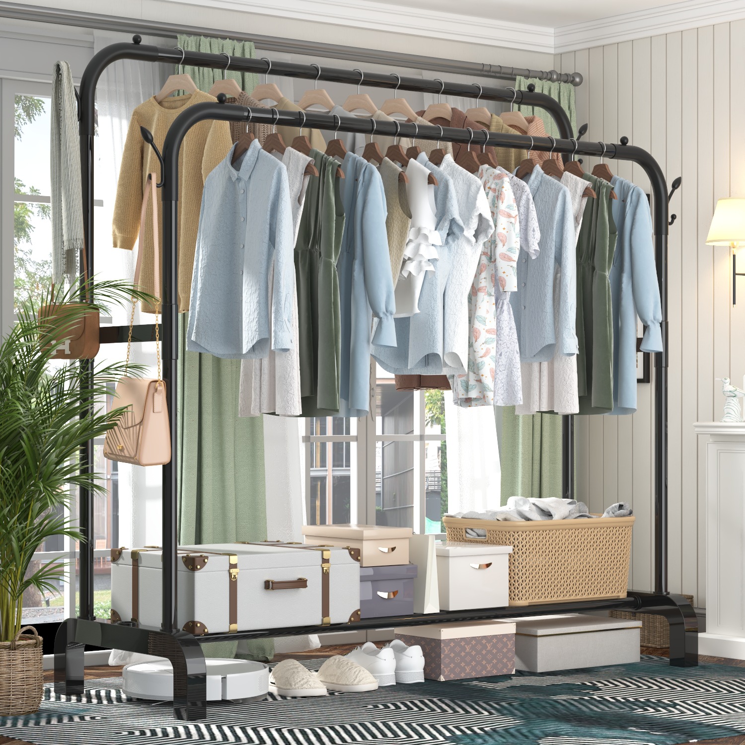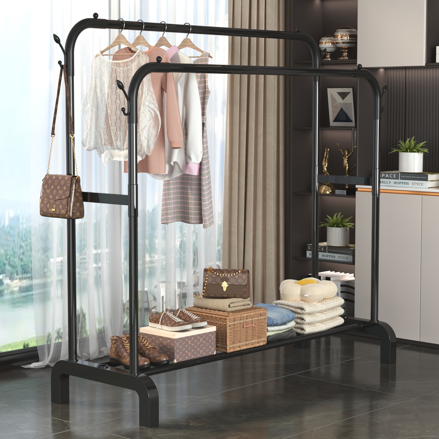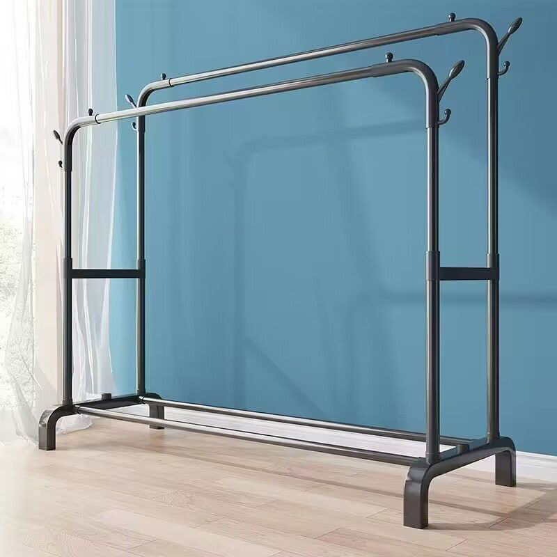 extra thick thickened floor double pole hanger balcony storage home clothes hanger movable multifunctional