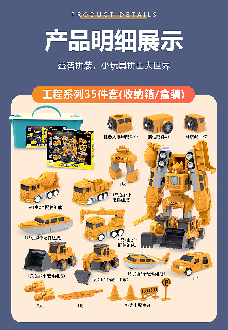 35-piece engineering vehicle series (storage box)