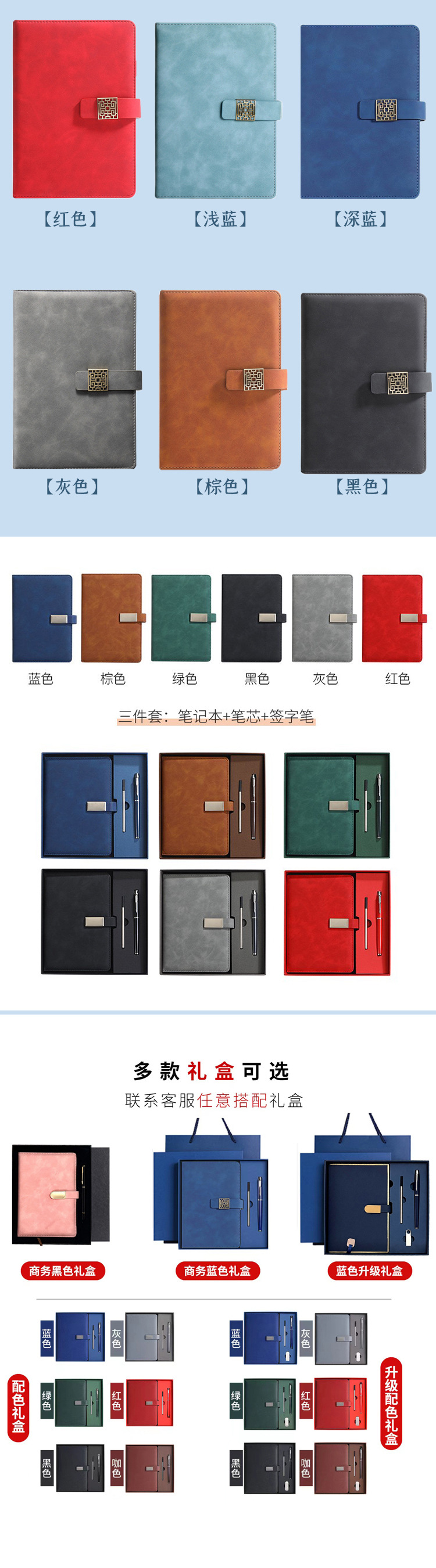 pill buckle-4 sets [notebook + metal pen + refill + u disk]]