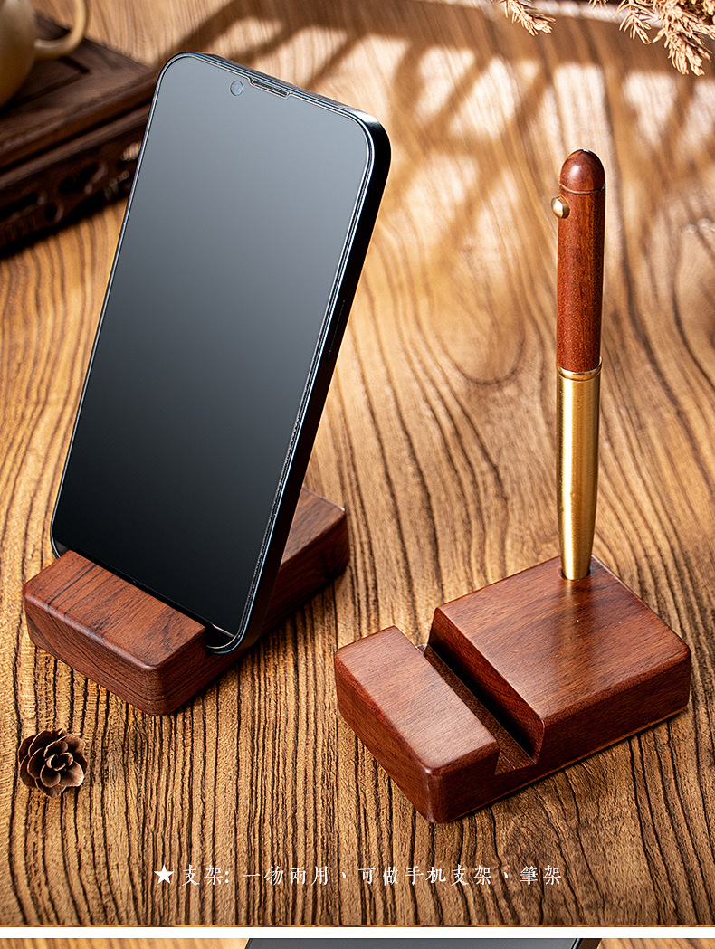 xy wooden pen + mobile phone holder