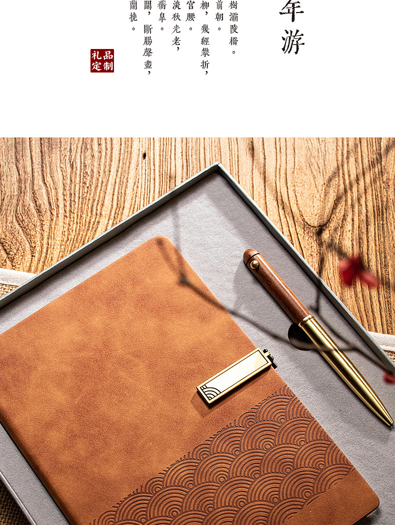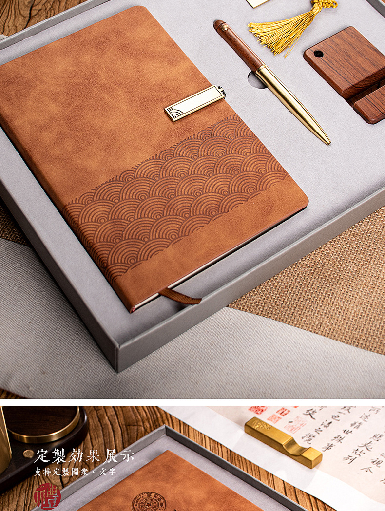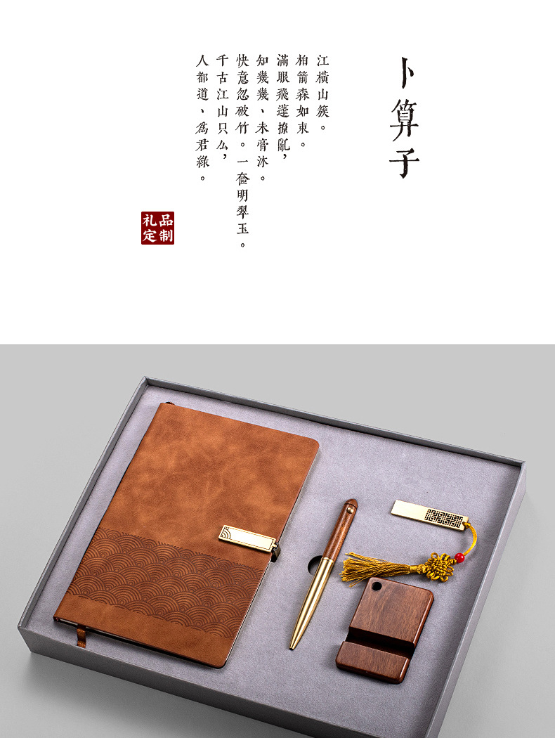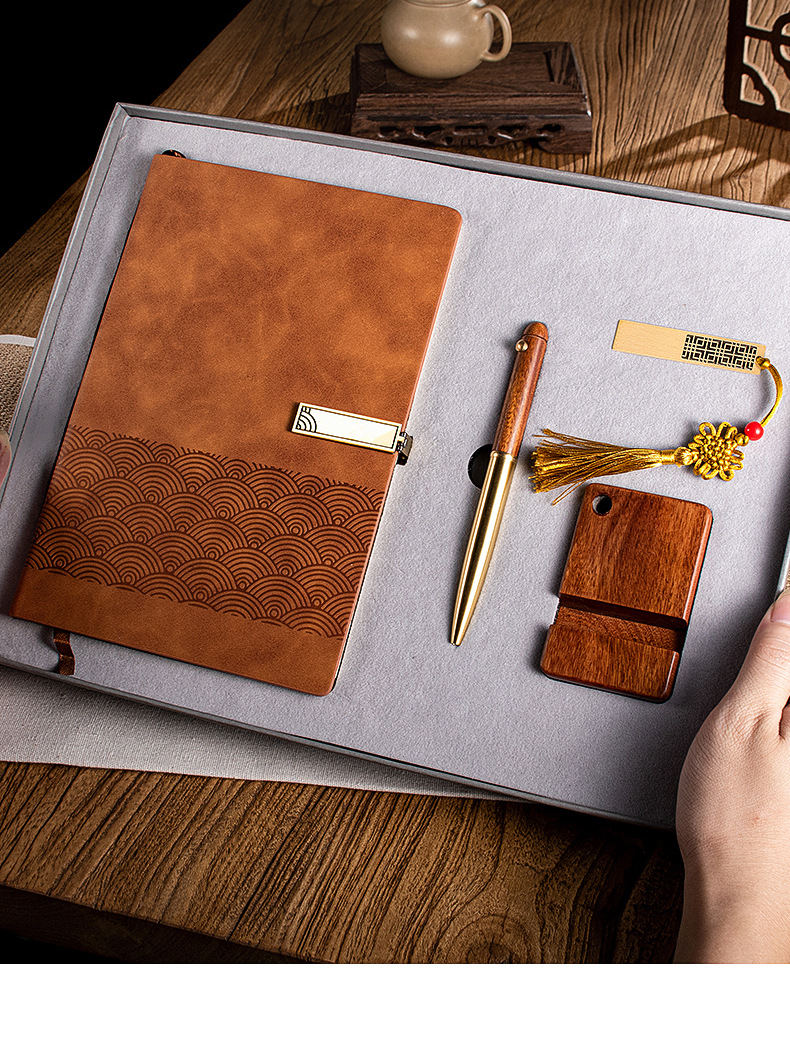 xy notebook + xy wooden pen + bronze u disk + mobile phone holder