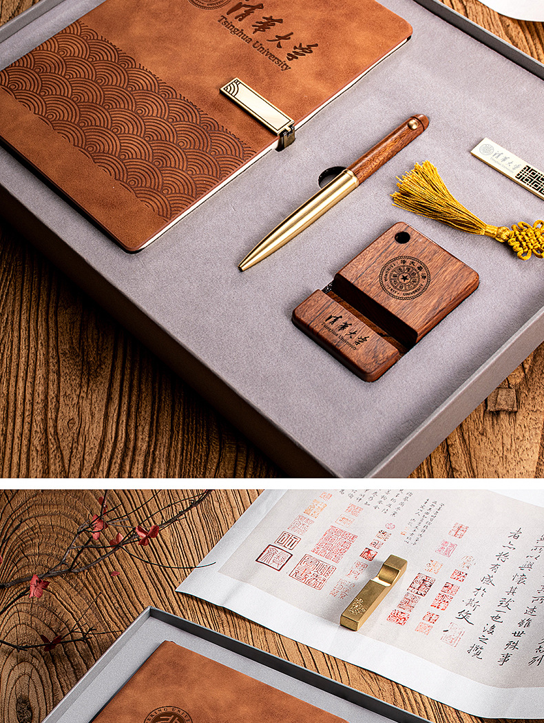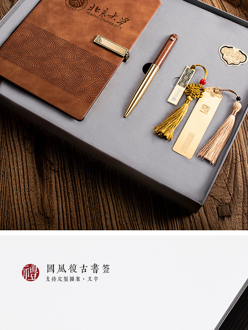 xy notebook + xy wooden pen + bronze u disk + xy small bookmark + xy large bookmark