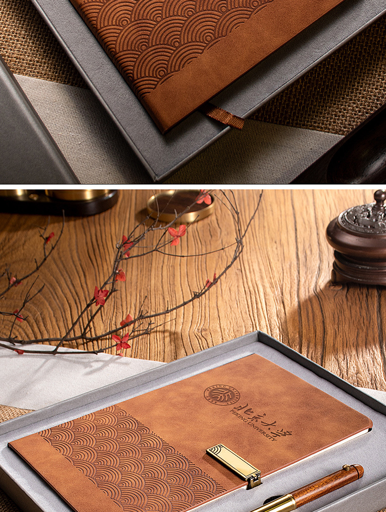 red-lt notebook + bronze pen + bronze u disk