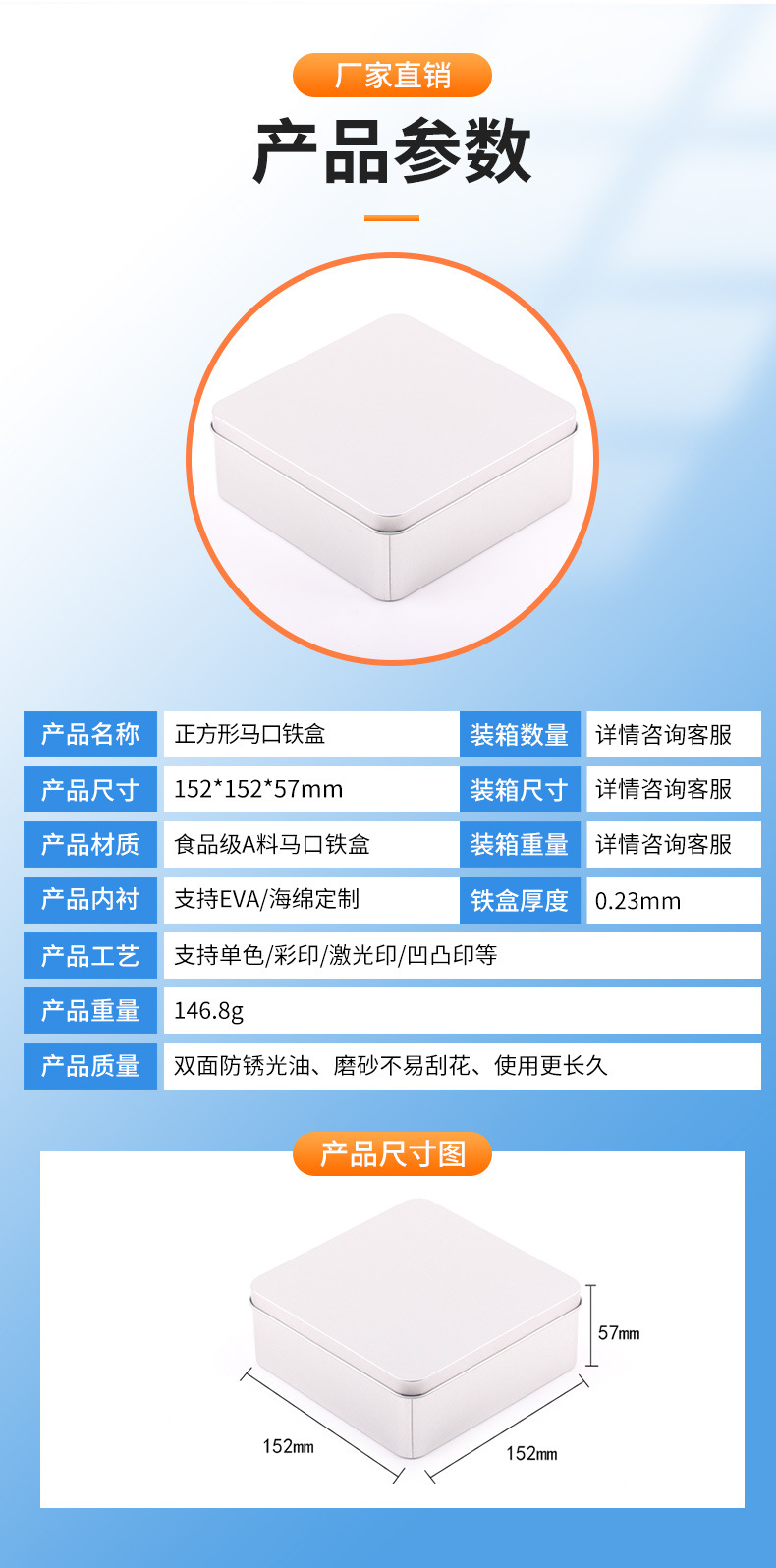 152*152*57 red flat lid box