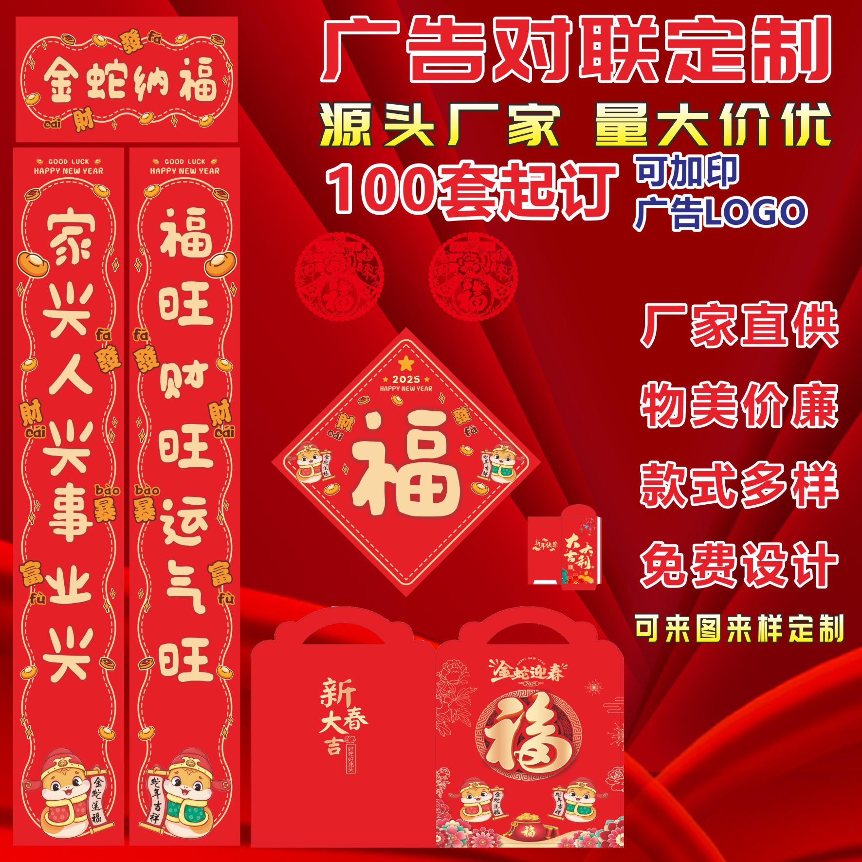 2025 snake year customized high-end gift set bronze printing gilding couplet new year couplet fu character red envelope annual meeting gifts advertising