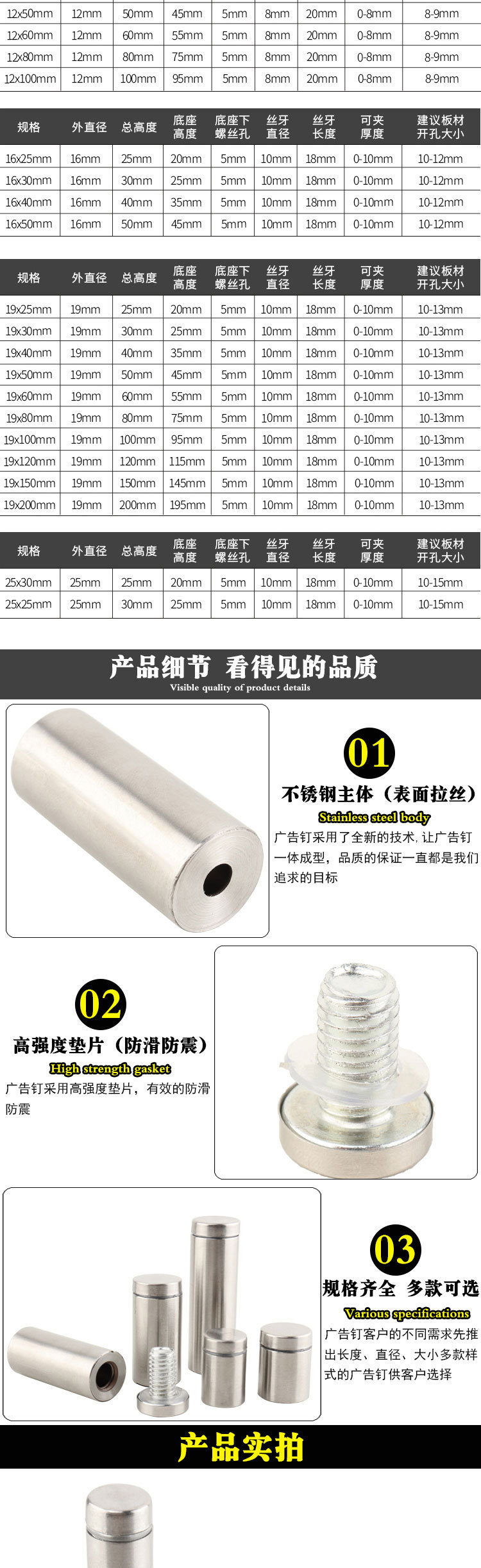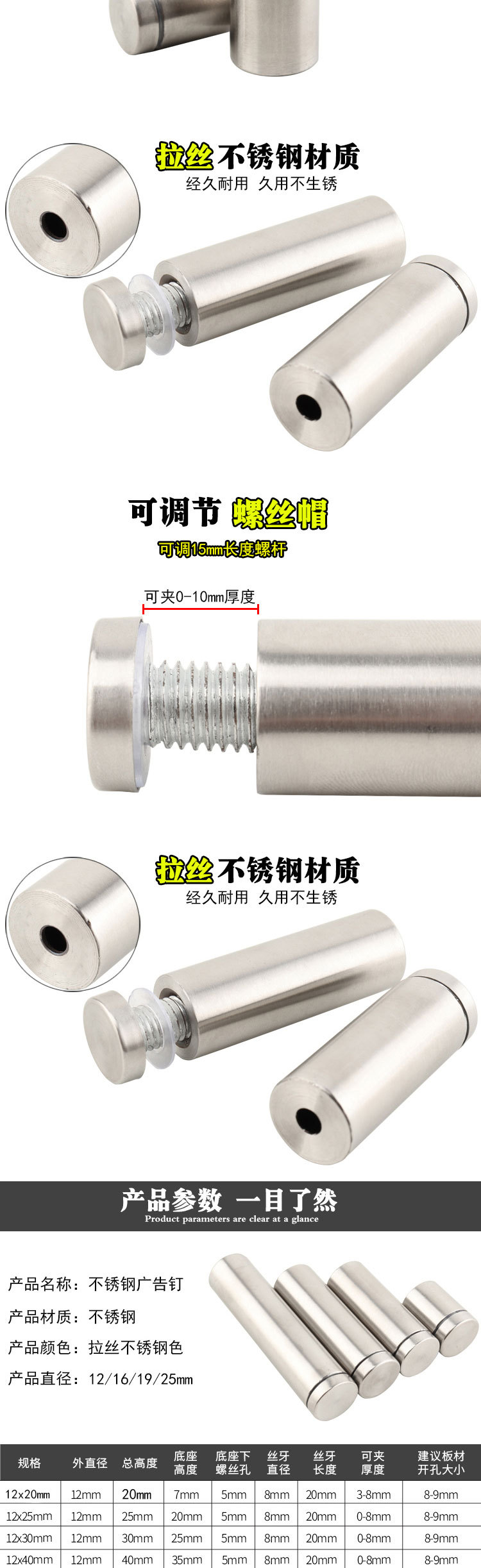 12 * 50mm stainless steel brushed color