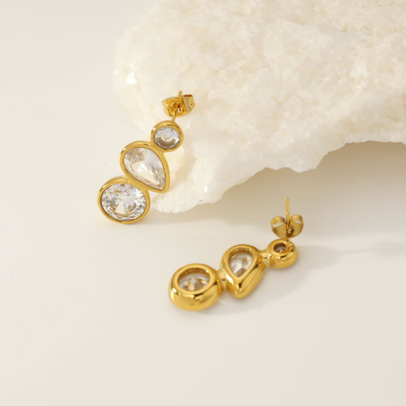 c155 three diamond stud earrings gold