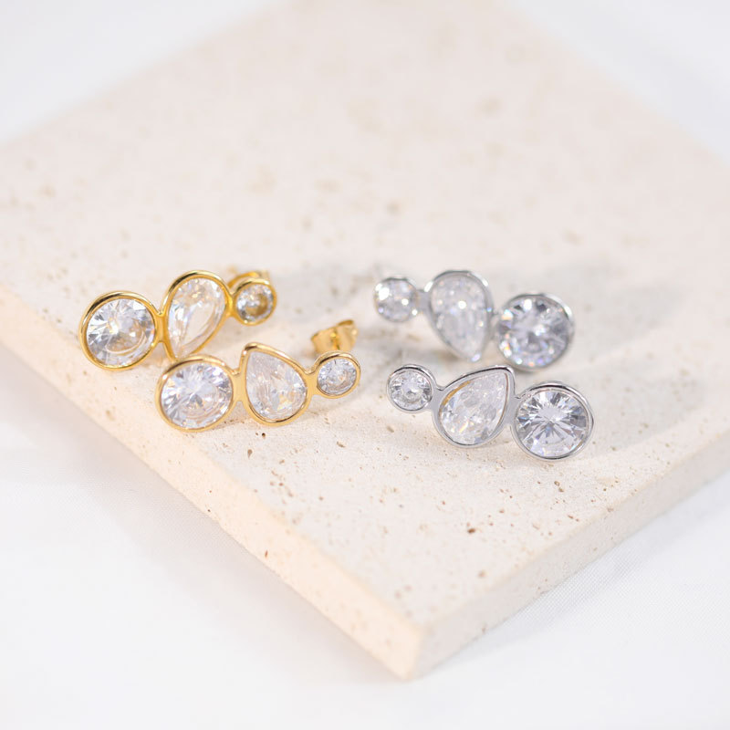 c155 three diamond stud earrings silver