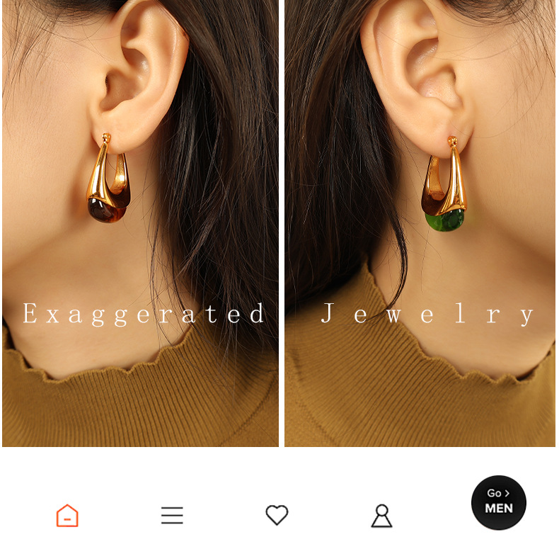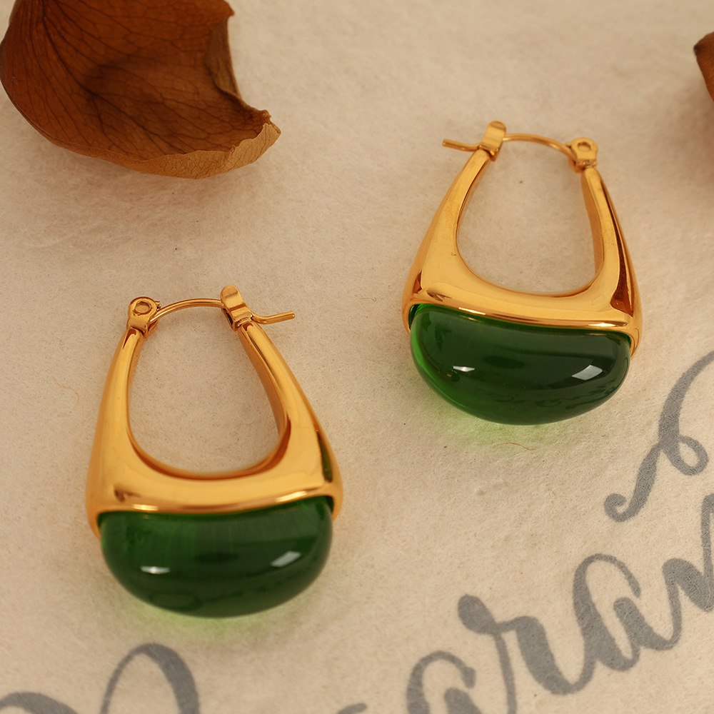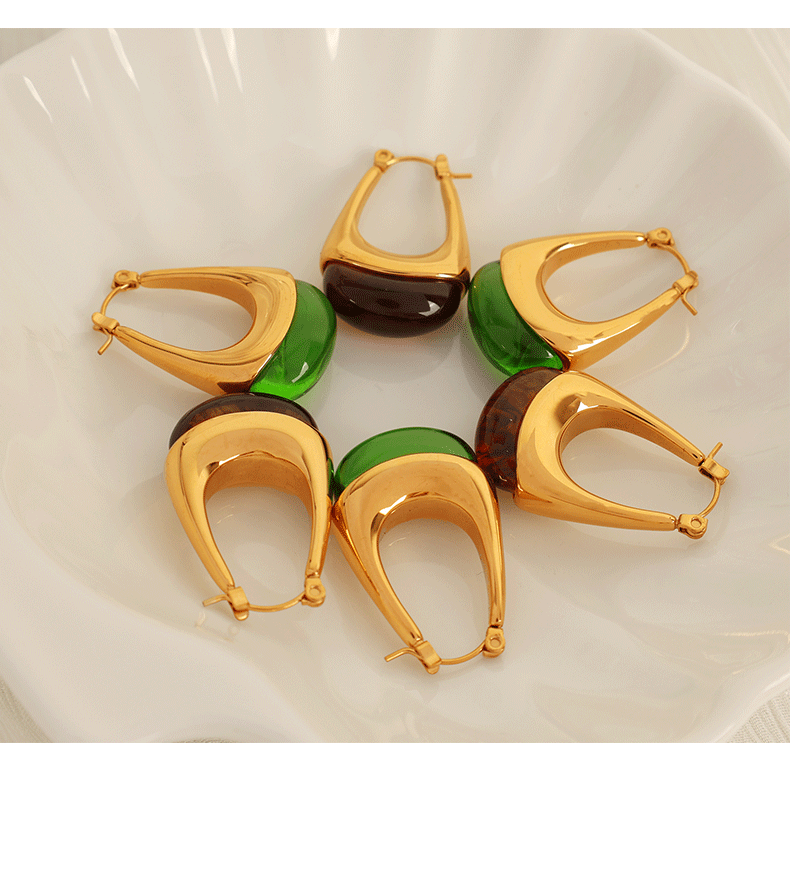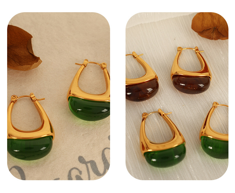 eh736 green resin gold earrings