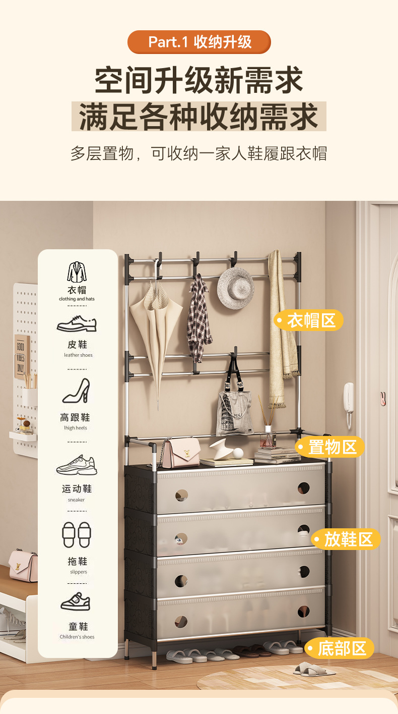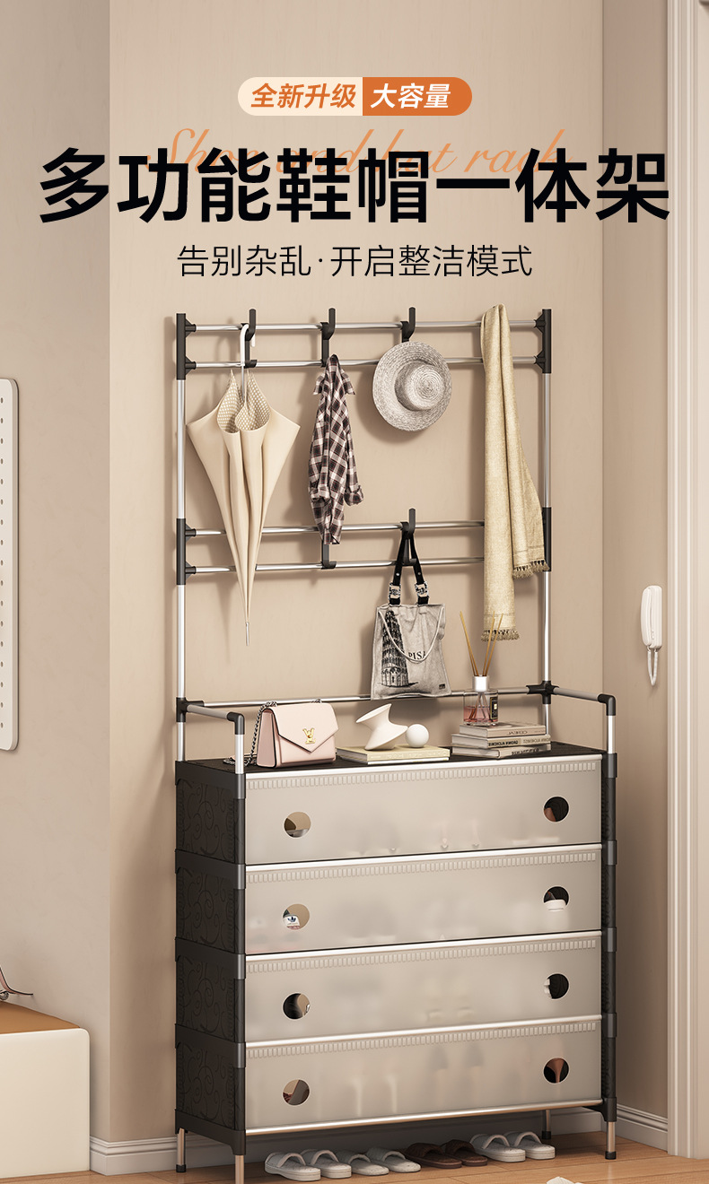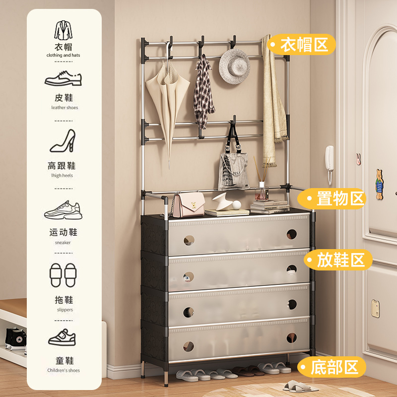 combination shoe rack door home integrated clothes rack multi-functional storage shoe cabinet coat rack multi-layer metal shelf