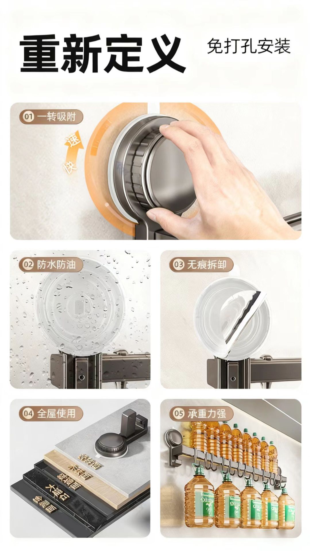 40cm double rod-8 hook [suction cup hanging rod]]