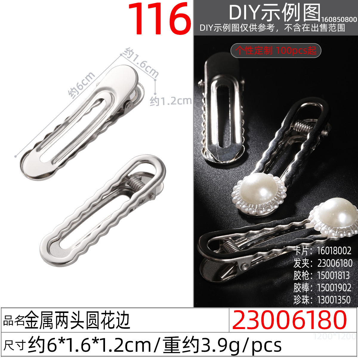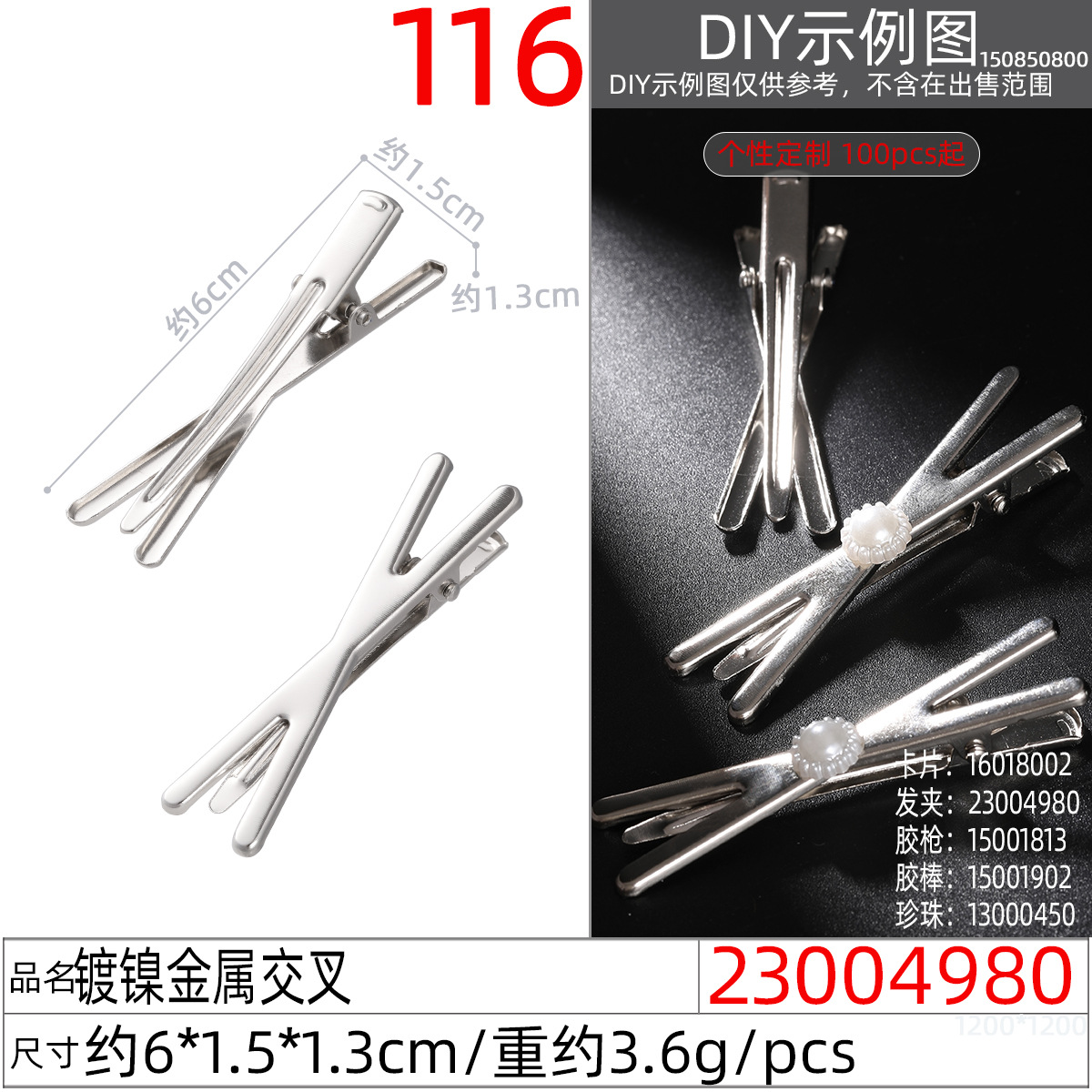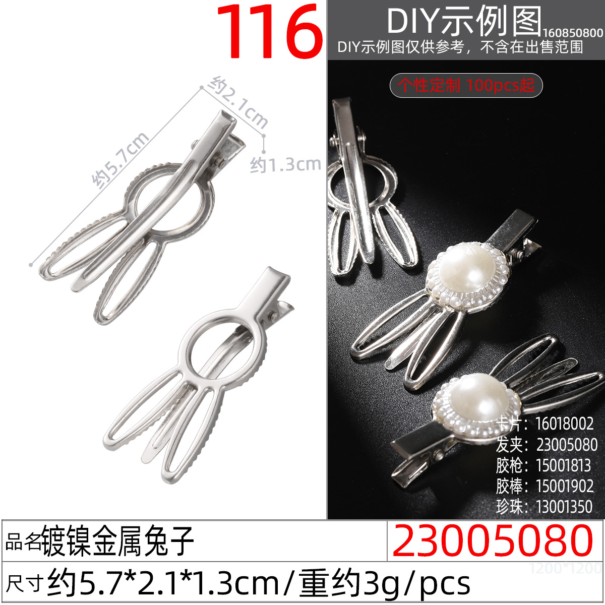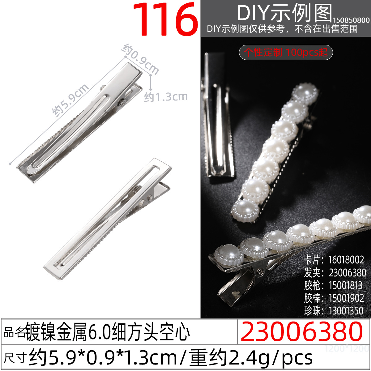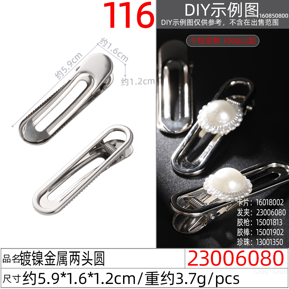 23005980x# nickel-plated metal generous hollow clip
