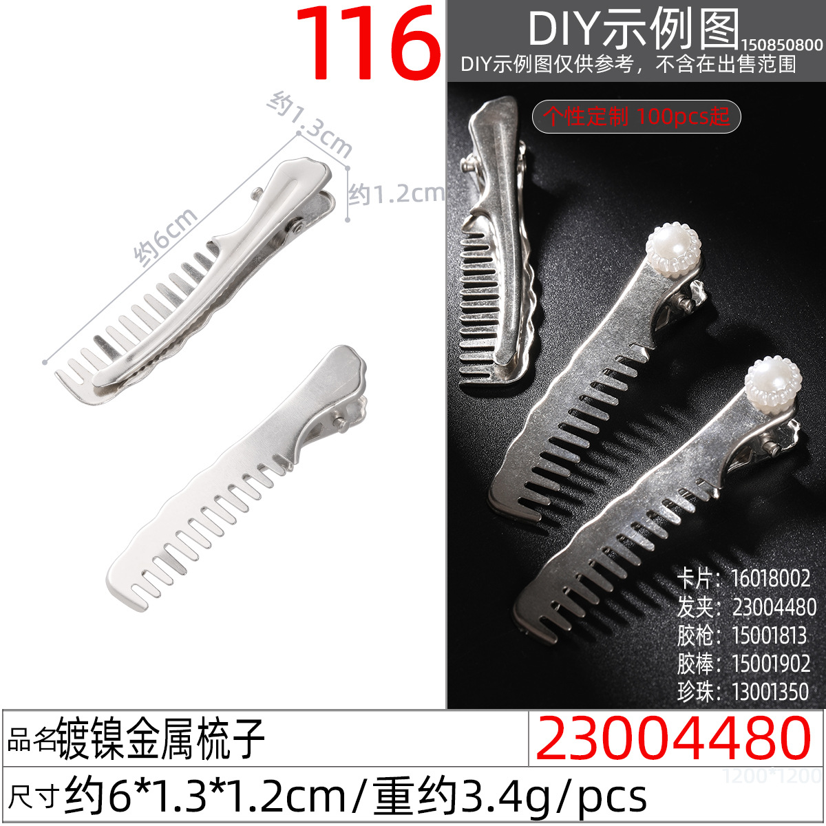 230004480x# nickel plated metal comb