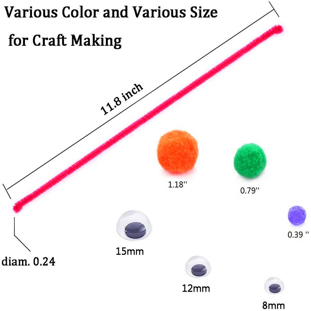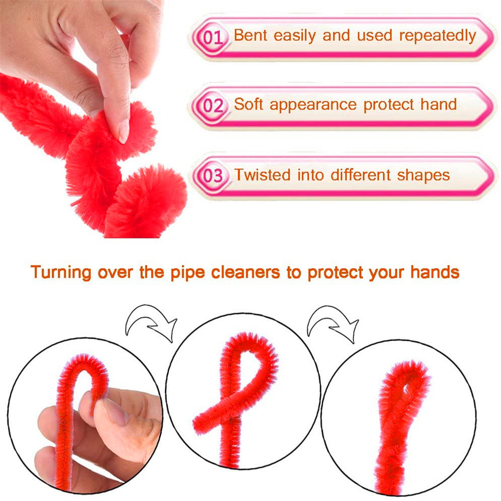 Material: Fiber and metal with bright colors, durable and long-lasting, perfect for cultivating children's imagination and creativity. DIY is very suitable for rainbow pipe cleaners, cute Christmas crafts, holiday wreaths, Halloween crafts, etc.