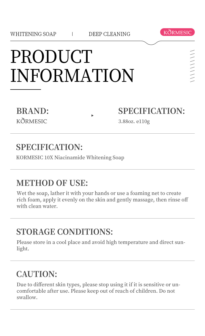 kormesic10x nicotinamide soap 110g [only for foreign trade cross-border sales, domestic sales are prohibited, purchase is