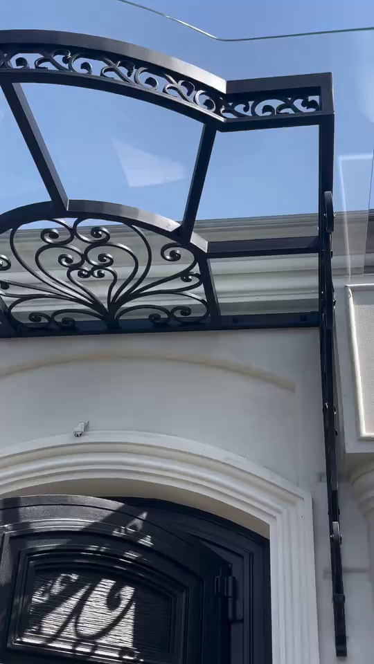 wrought iron canopy forged sunshade thick glass courtyard balcony pavilion window sill rain match promotion