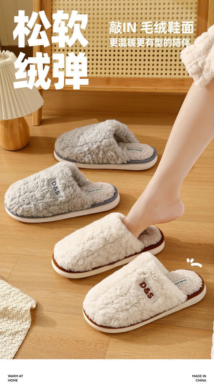 2026 new cotton slippers women's autumn and winter indoor household non-slip warm velvet slippers closed toe men