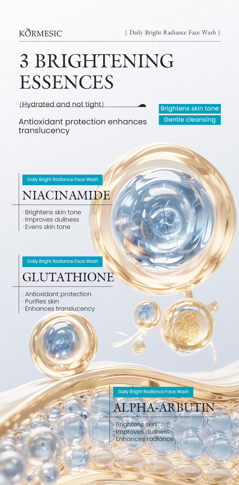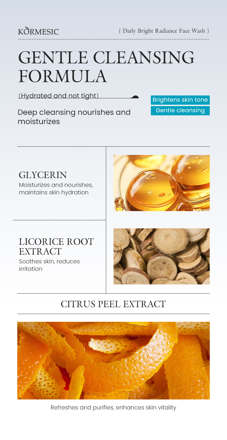 kormesic daily brightening gloss facial cleanser 100g [only for foreign trade cross-border sales, domestic sales are prohibited, purchase