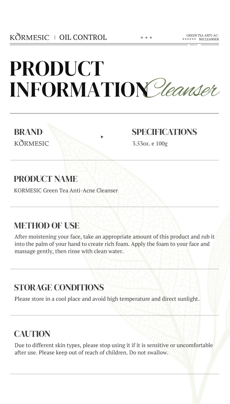 kormesic green tea facial cleanser 100g [only for cross-border sales of foreign trade, domestic sales are prohibited, and purchase is free by default