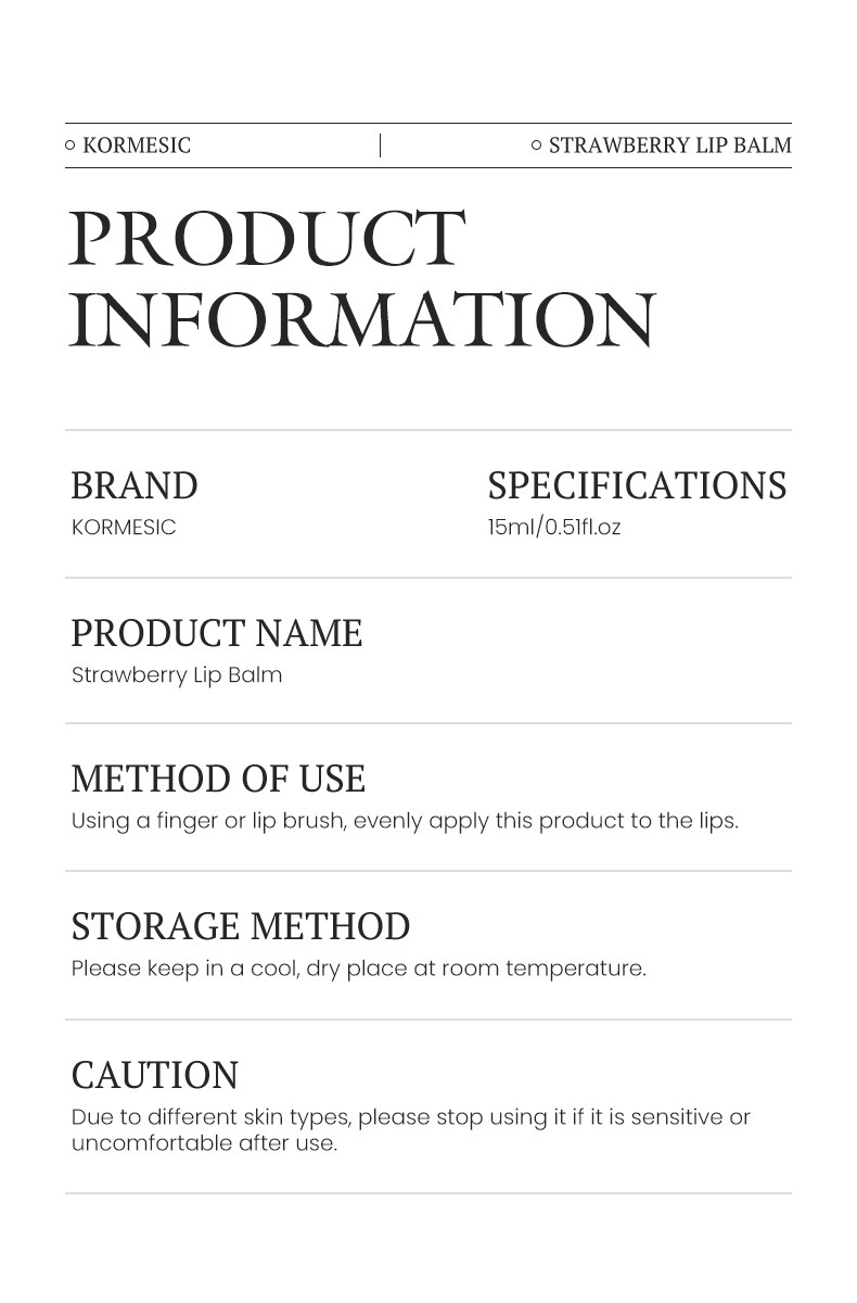 kormesic strawberry lip balm 15ml [only for cross-border sales of foreign trade, domestic sales are prohibited, and purchase is free by default