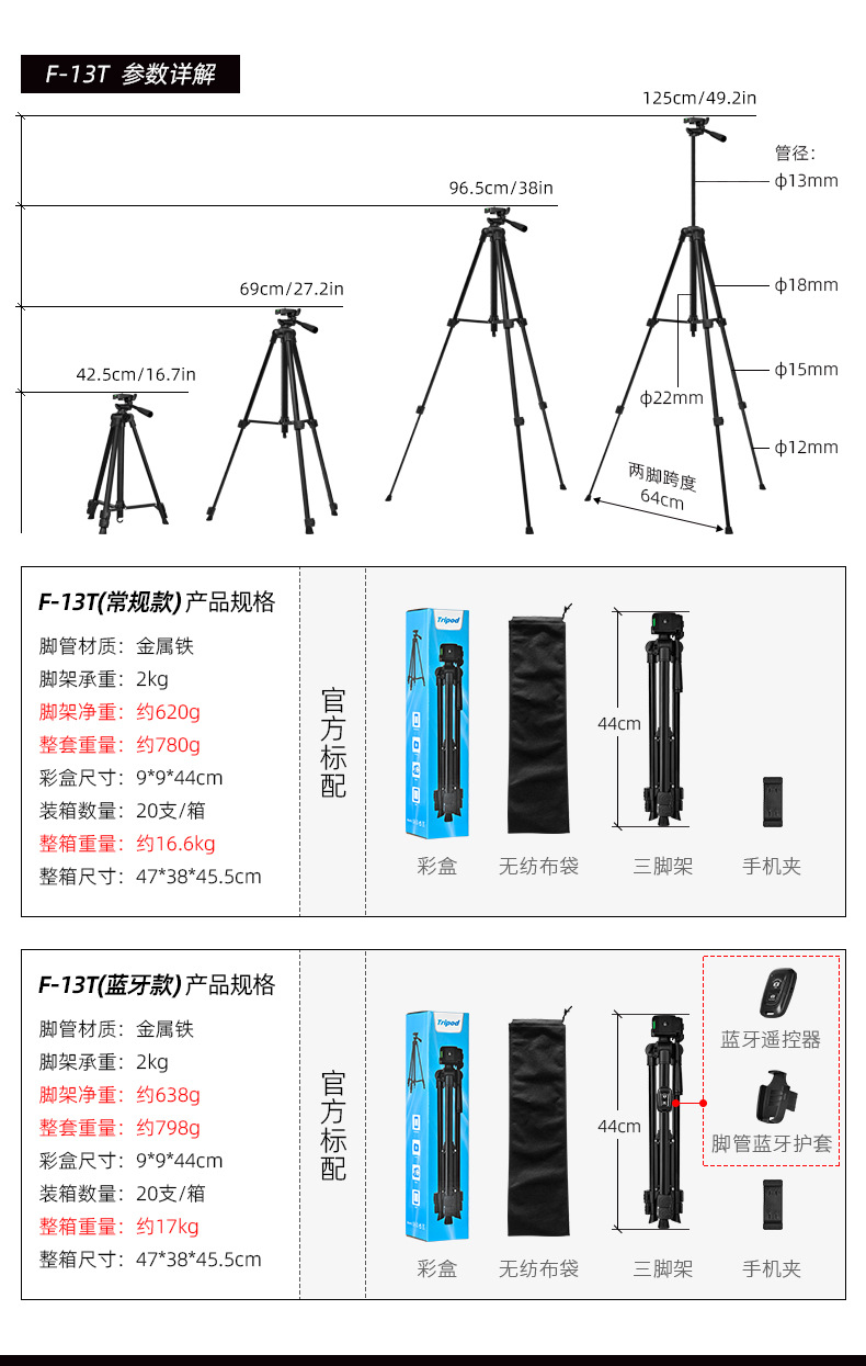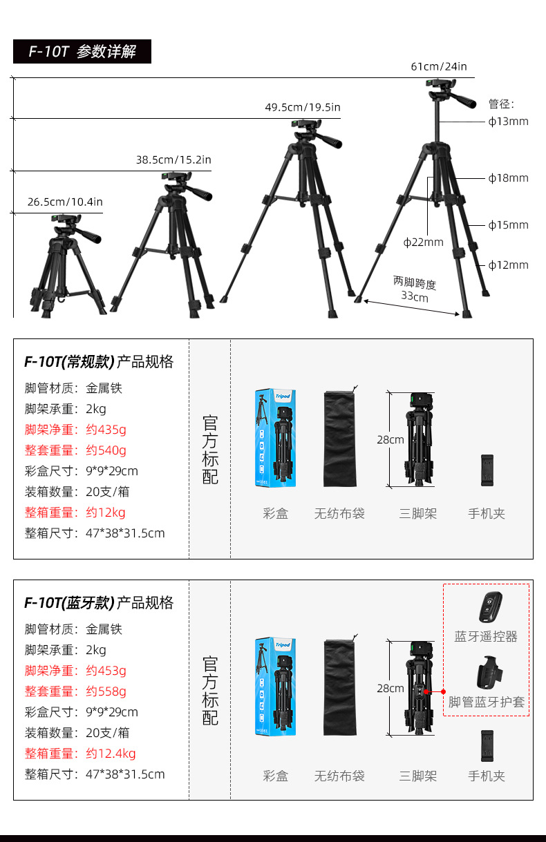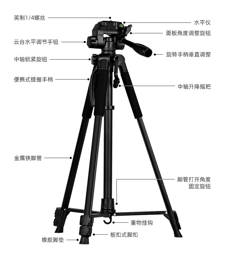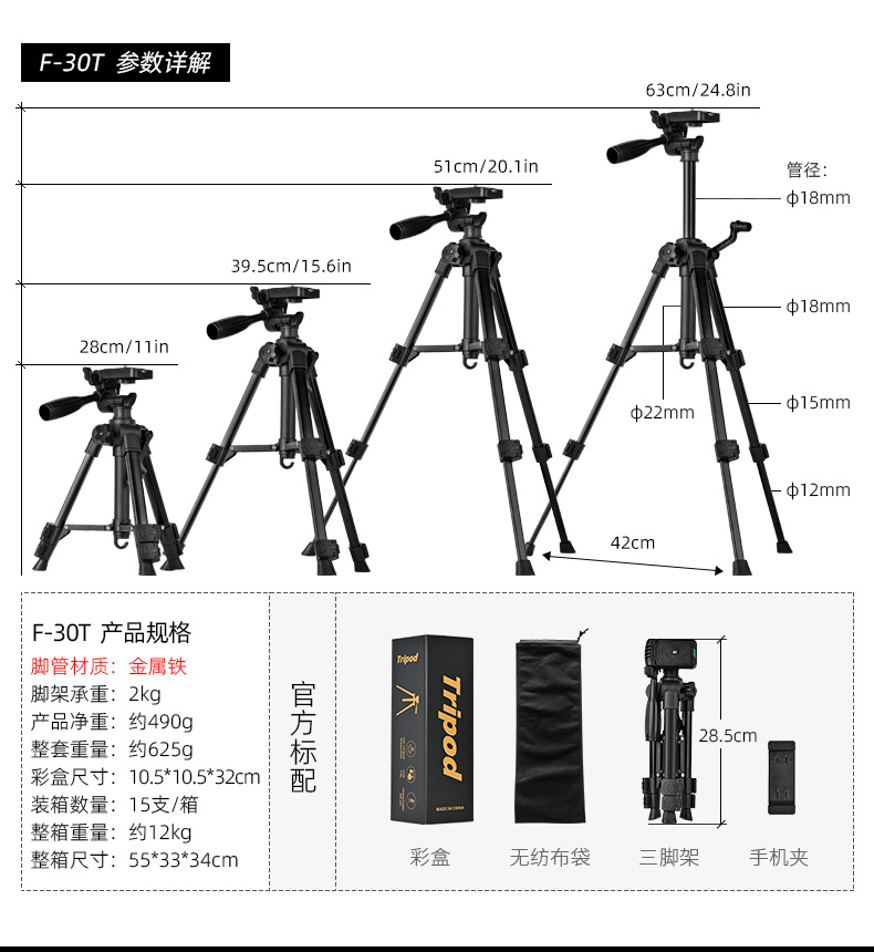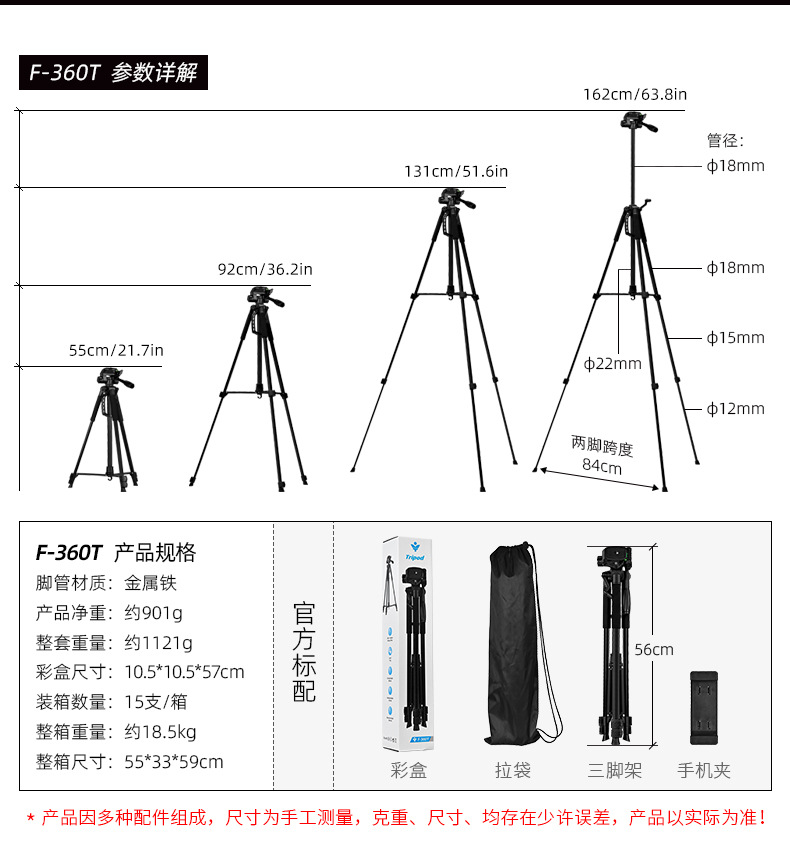 f-3366t iron pipe (with quick release plate) + color box + non-woven bag + hollow e clip