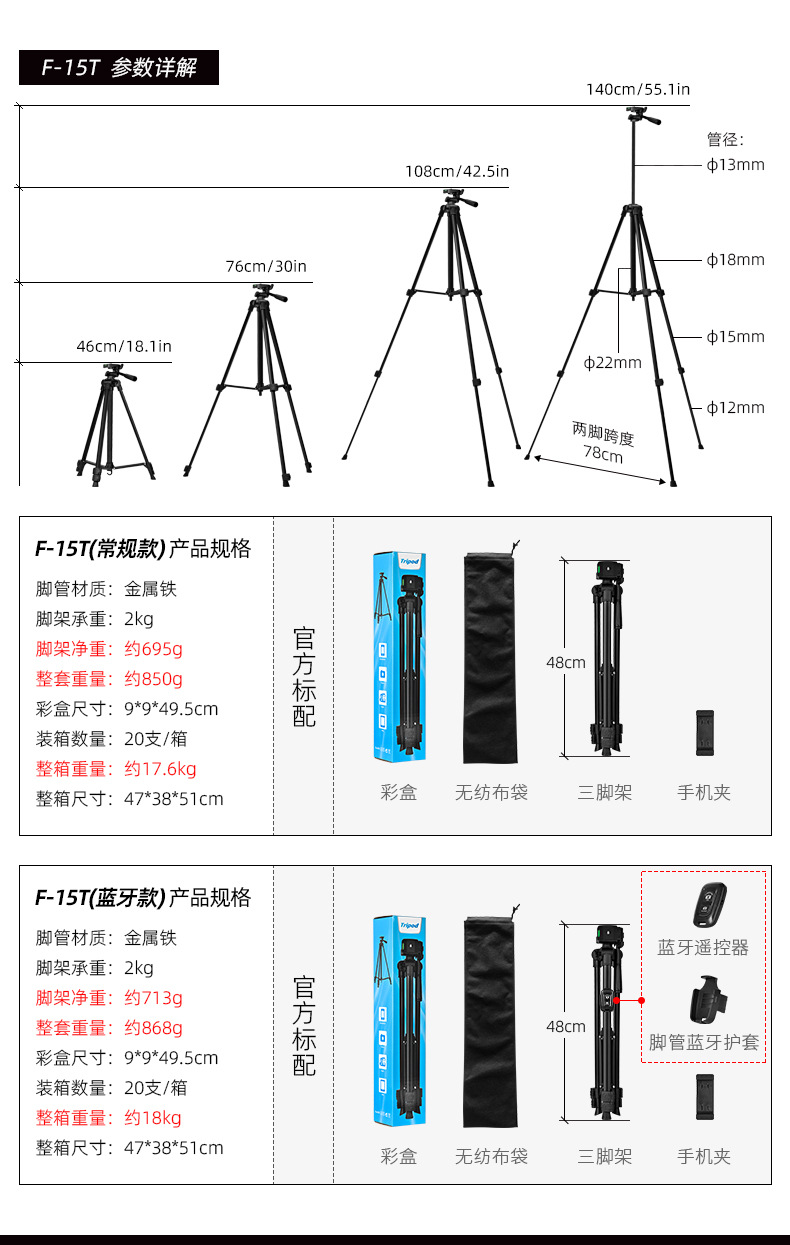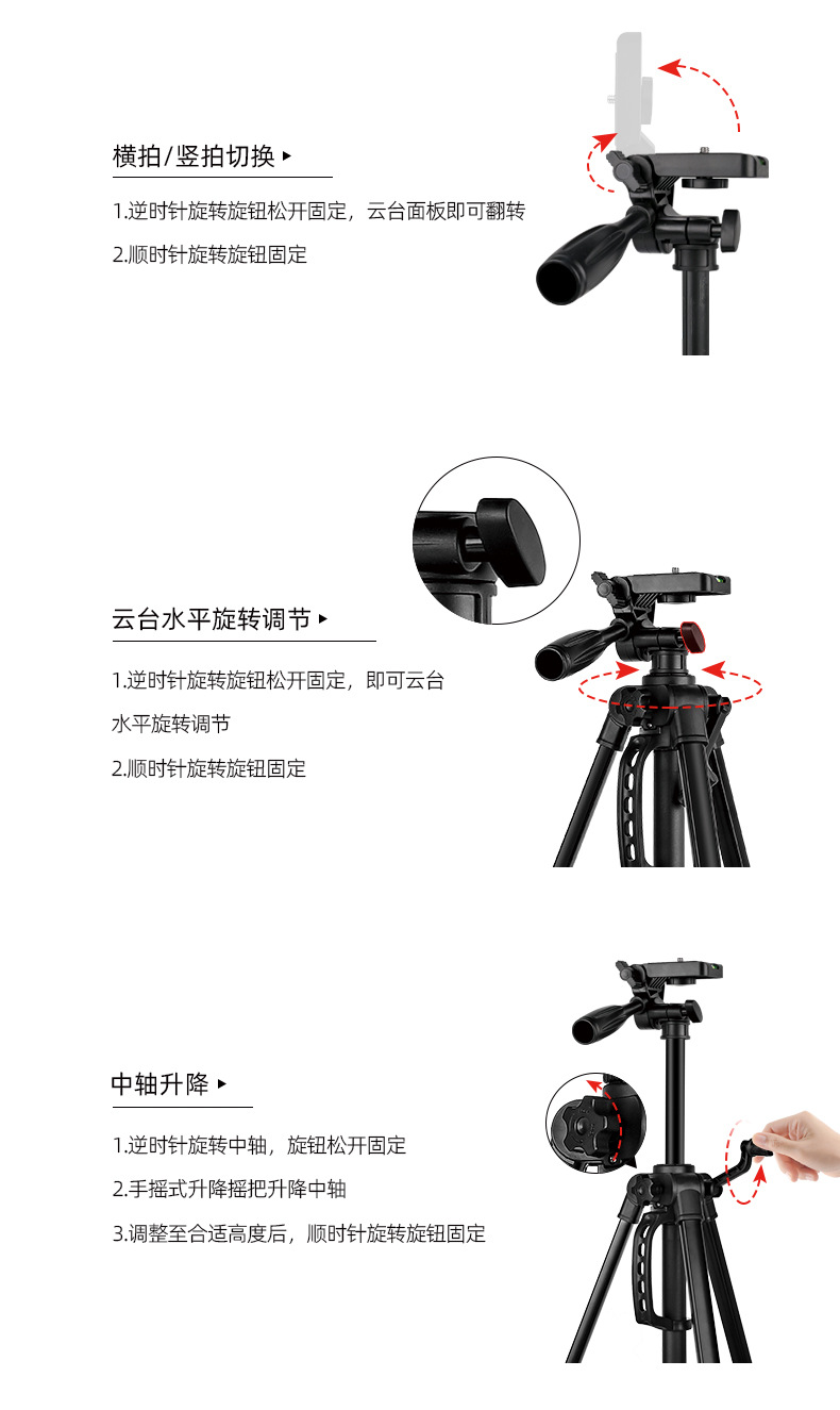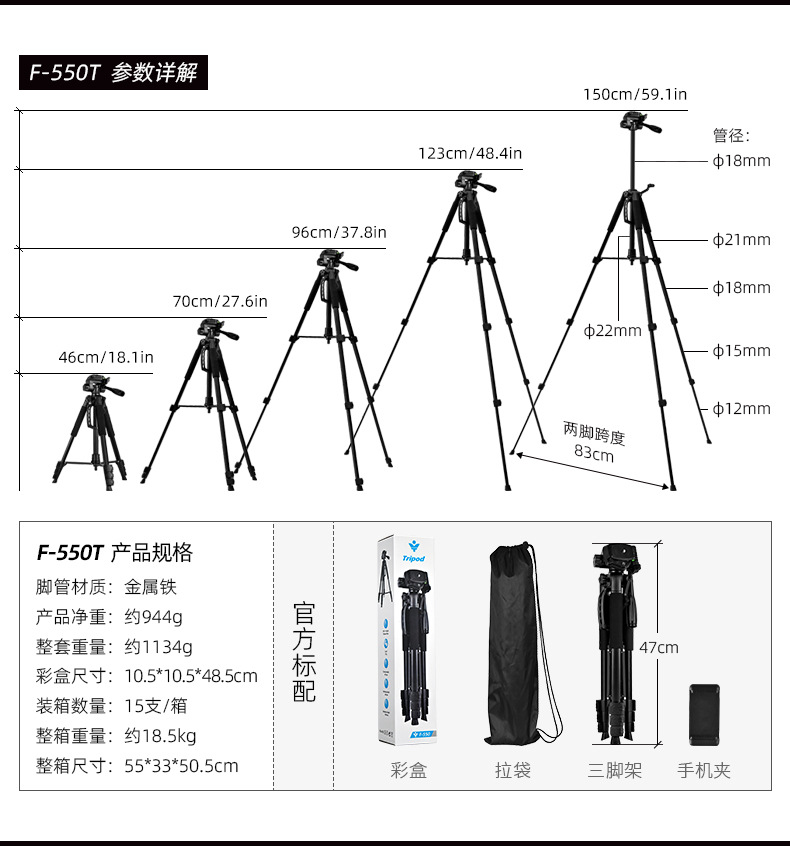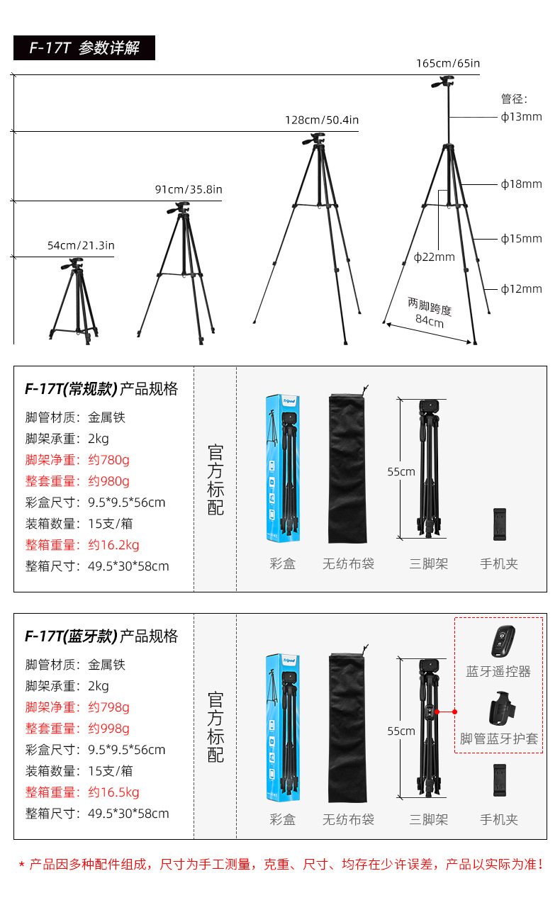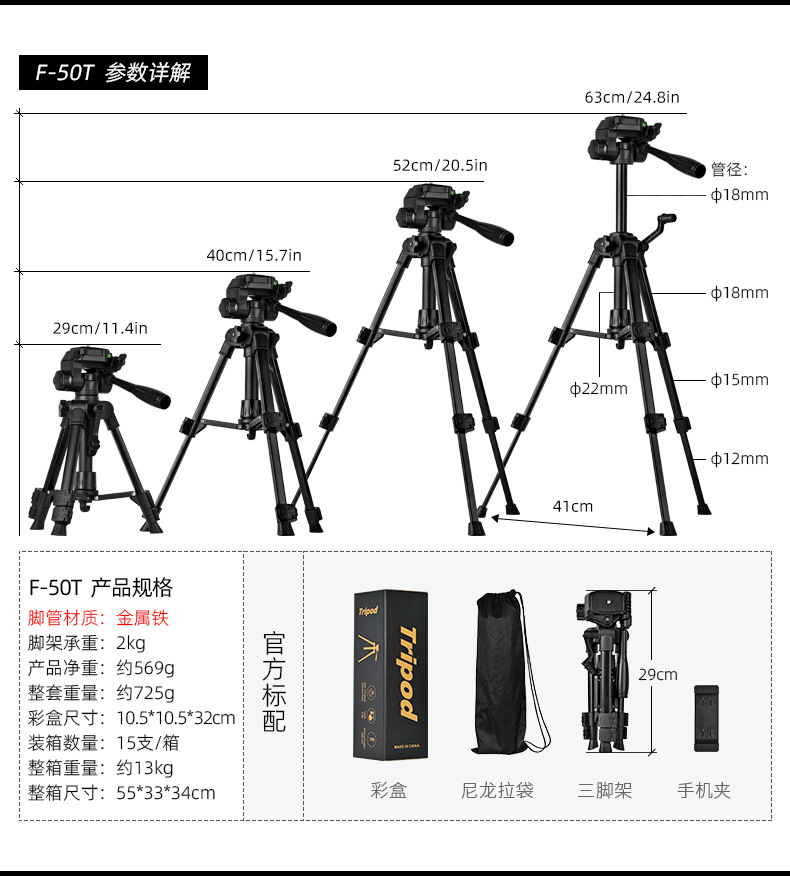 f-3366t iron pipe (with quick release plate) + color box + non-woven bag + hollow e clip
