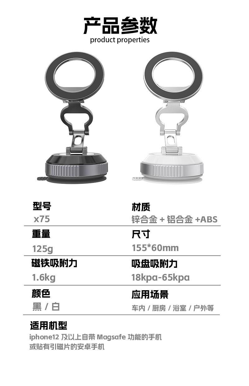 cross-border new arrival 2025 vacuum sucker on-board bracket car black technology navigation vacuum magnetic phone holder