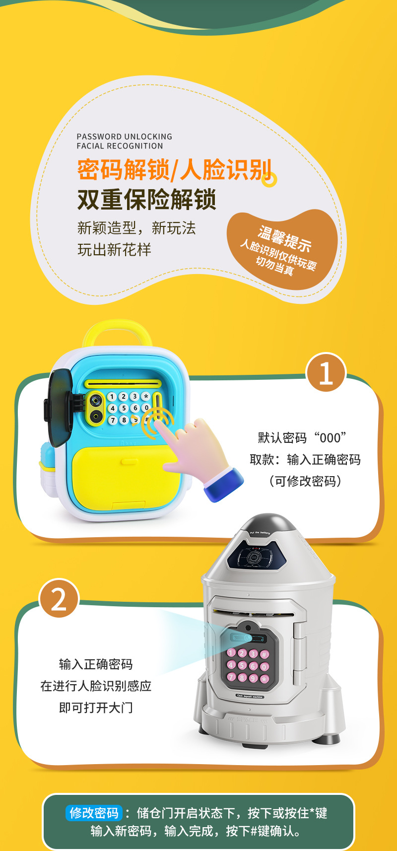8031 face recognition coin bank-pink (rechargeable version)