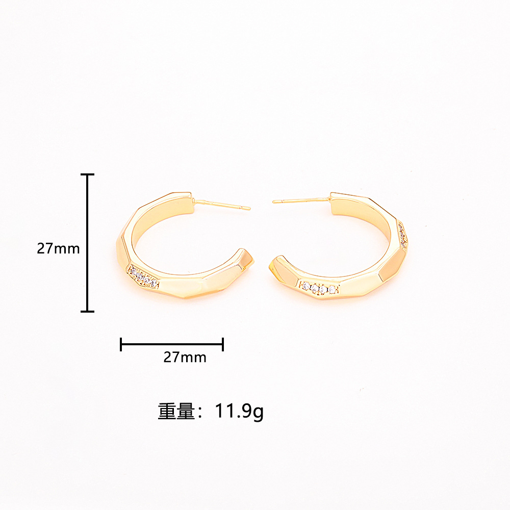 gold c- ring stud earrings (sterling silver needle)