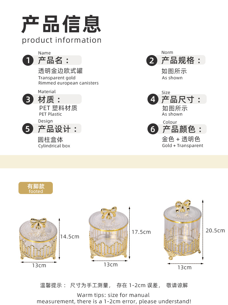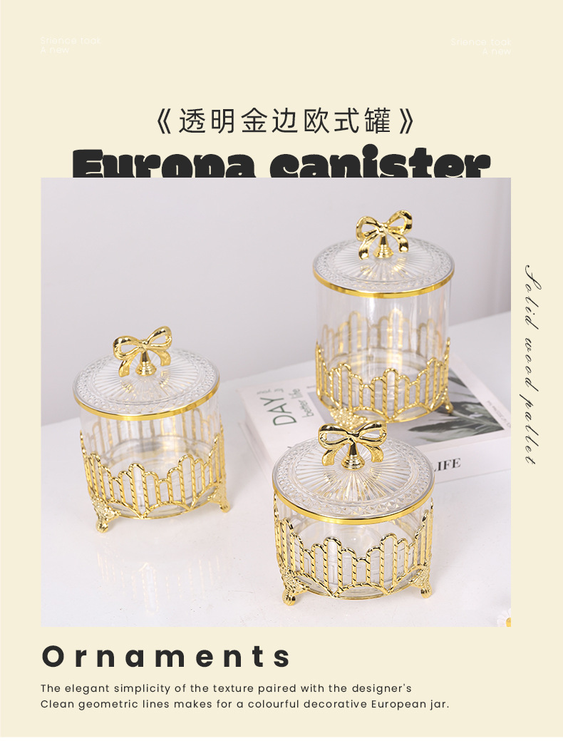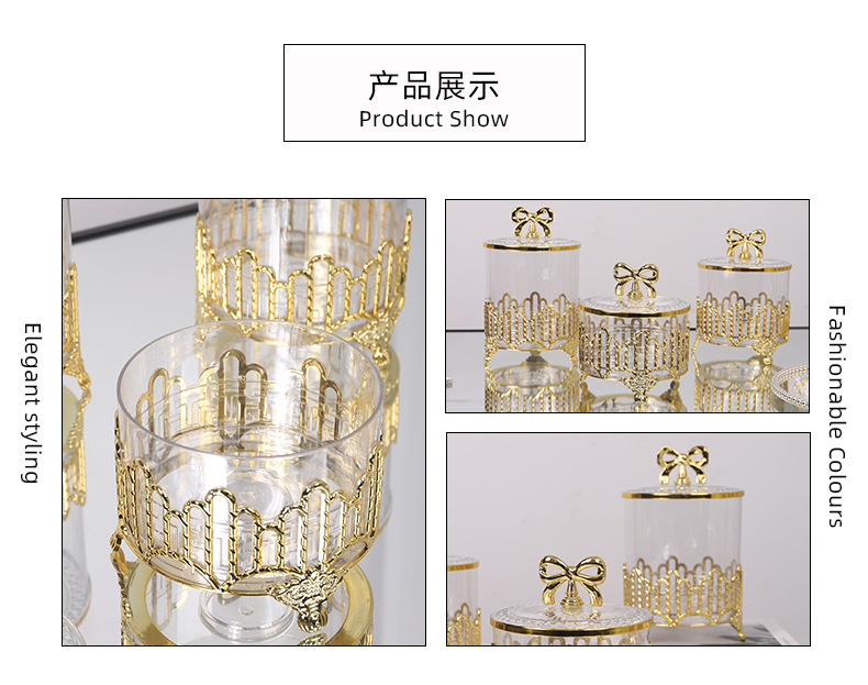 cross-border gold plating candy box three-piece set living room dried fruit jar decoration electroplating candy box