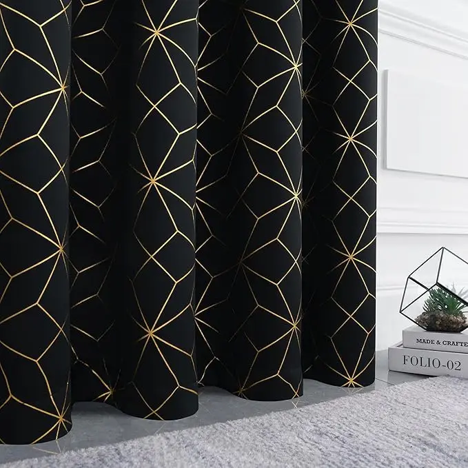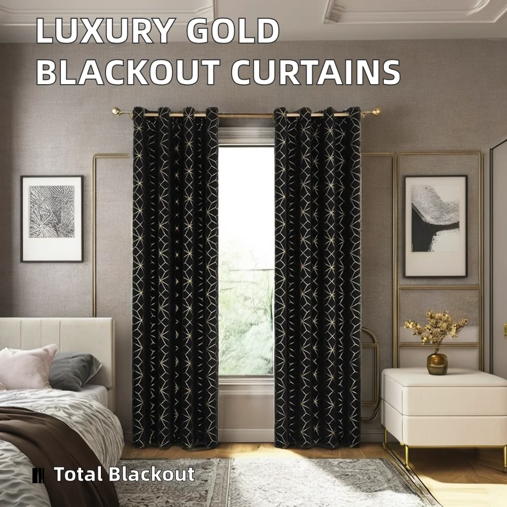 high quality luxury golden pattern curtain 100% blackout, suitable for modern bedroom and living room
