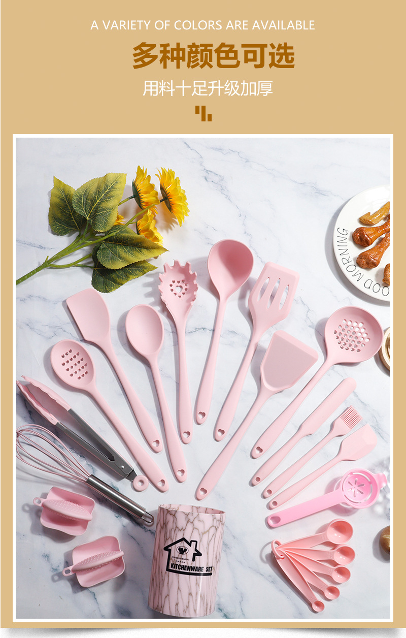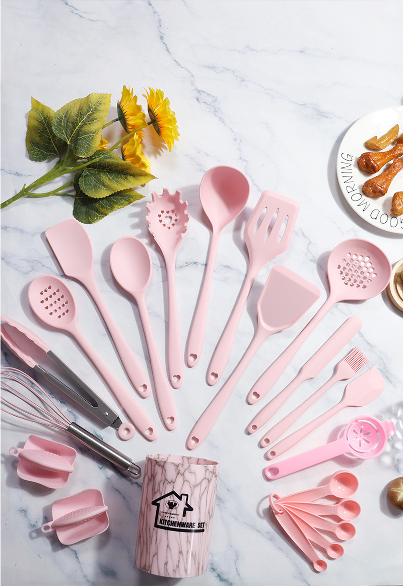 22-piece silicone kitchenware set-pink