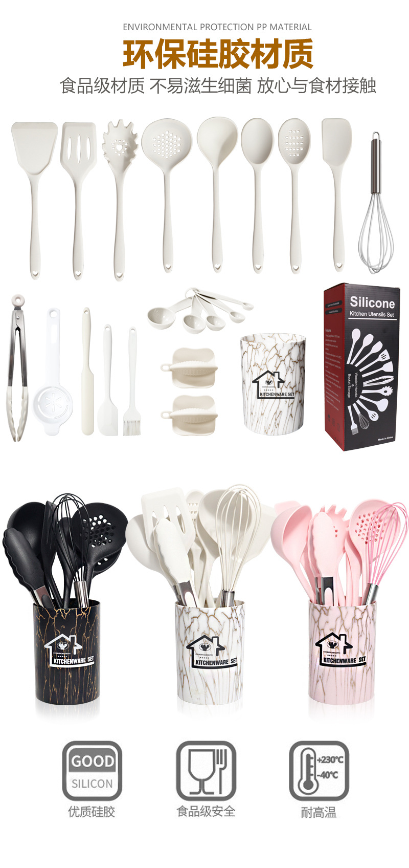 18-piece silicone kitchenware set-white