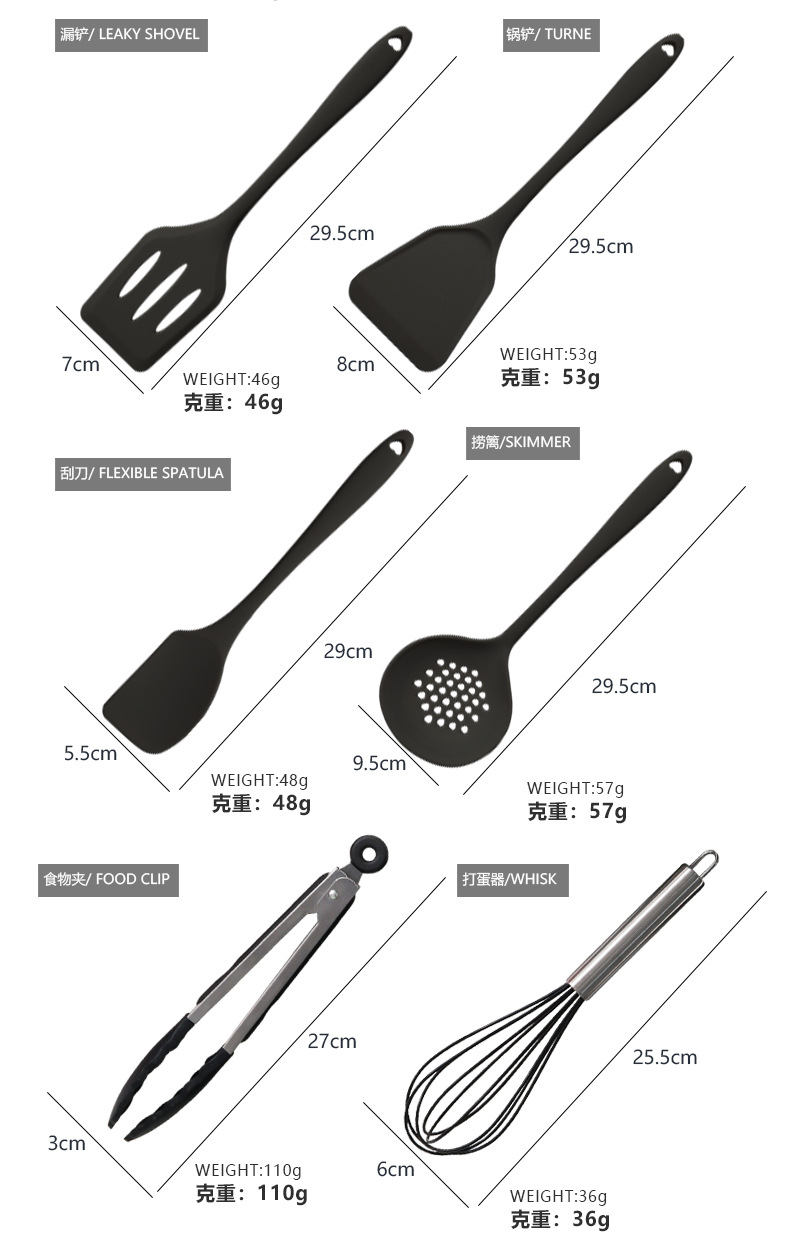 10-piece silicone kitchenware set-black
