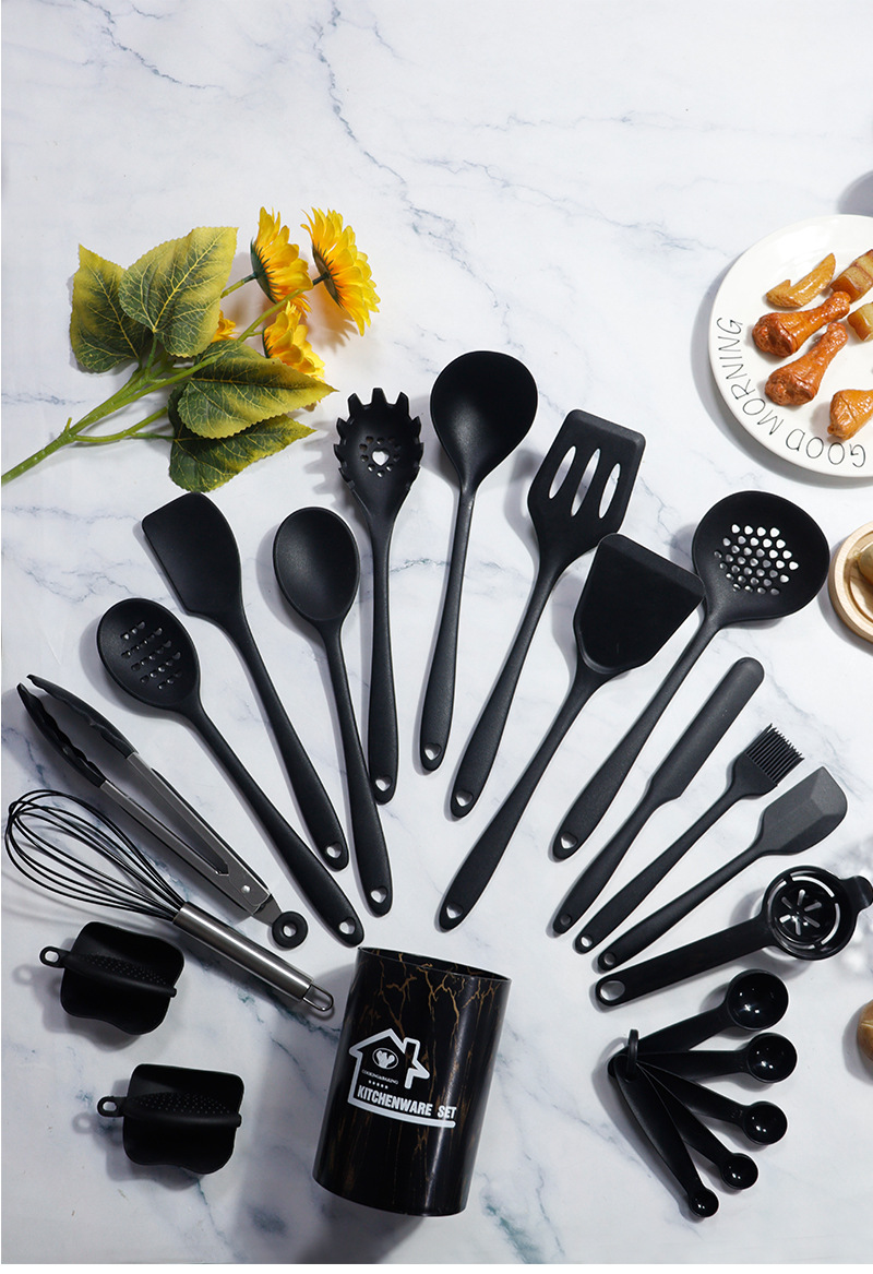 22-piece silicone kitchenware set-black