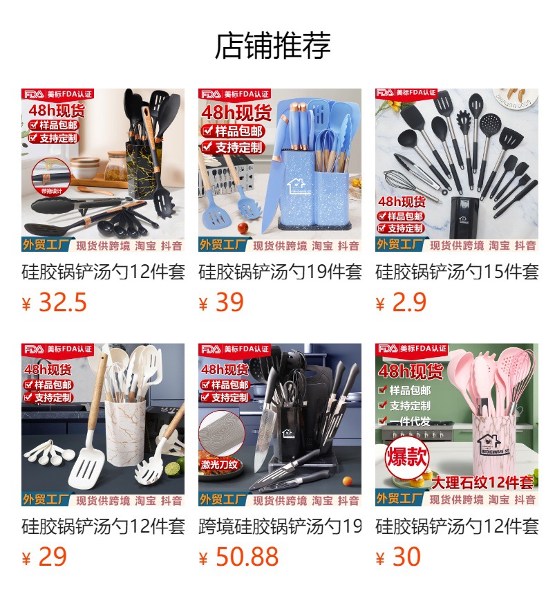 1600g silicone kitchenware knives 19-piece set-black