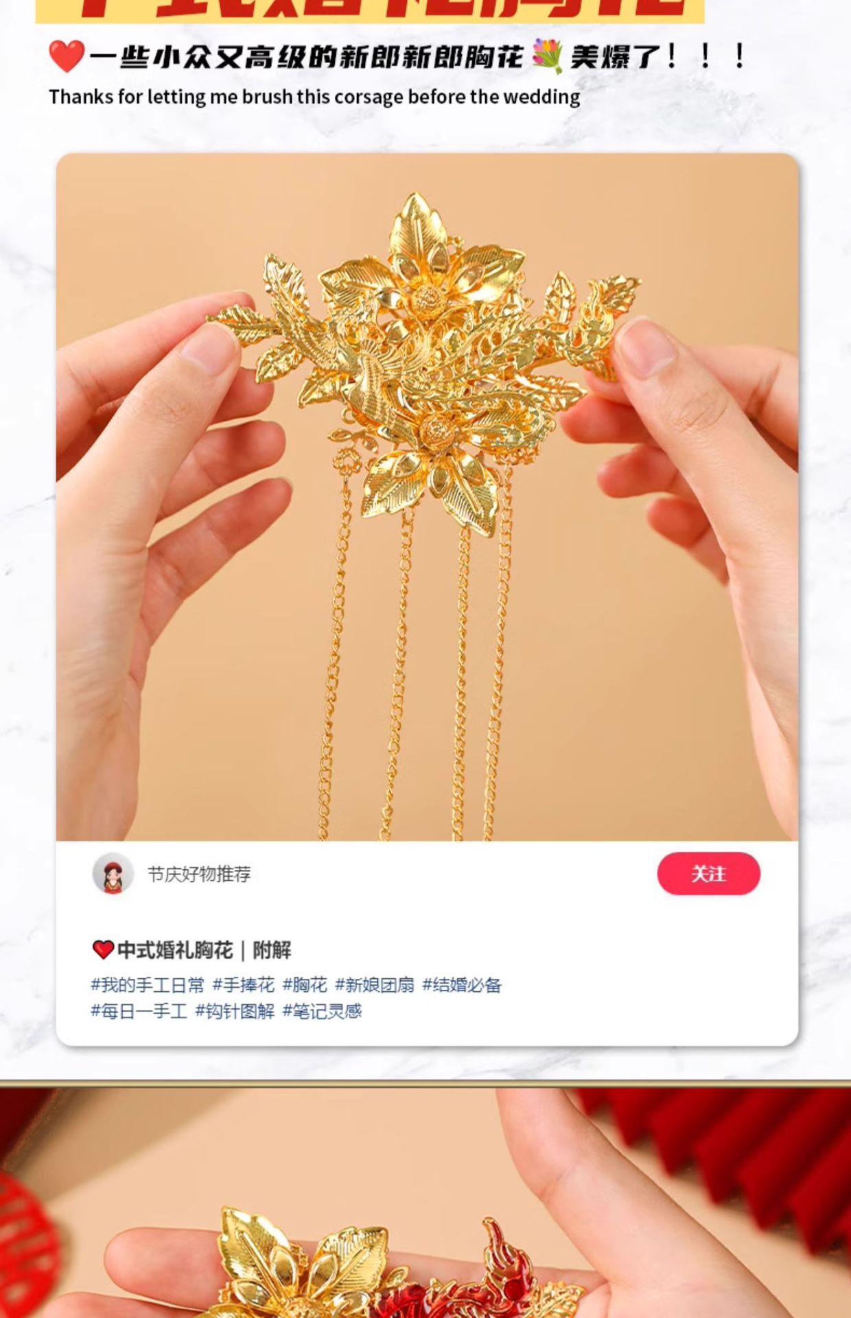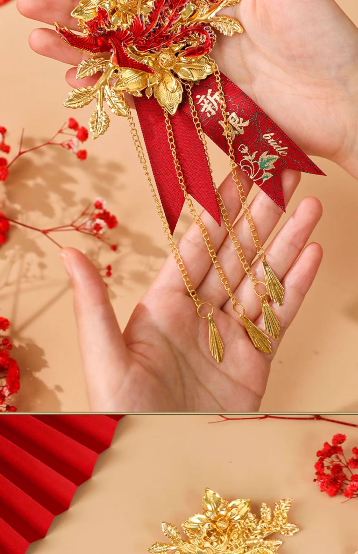 golden dragon and phoenix corsage (groom + bride) peony ribbon
