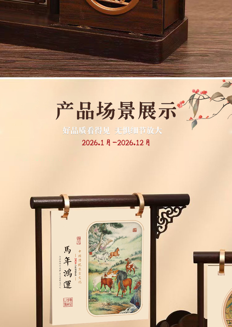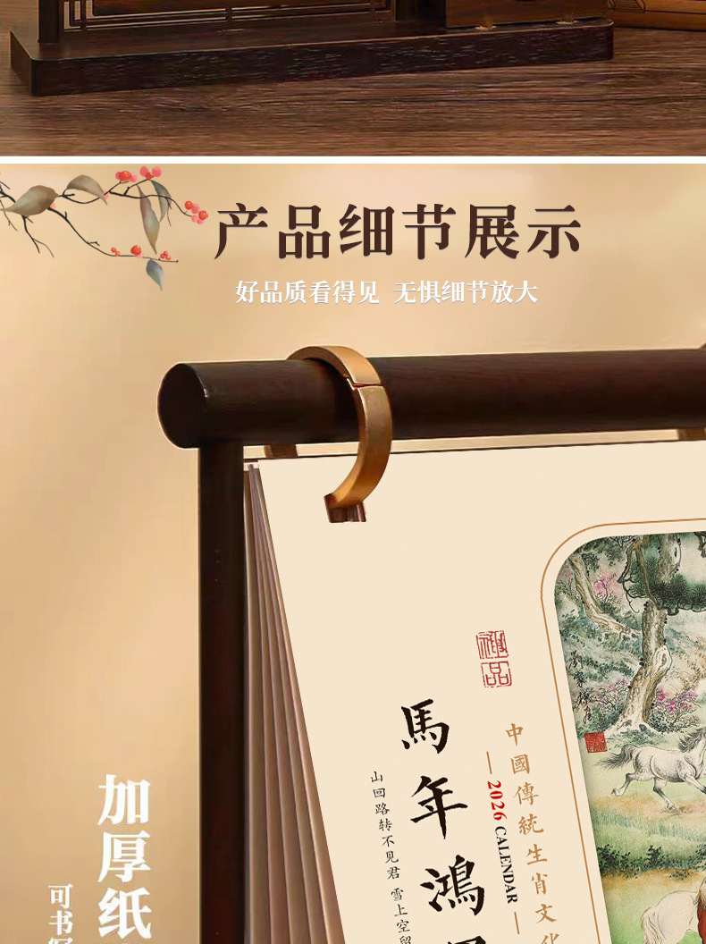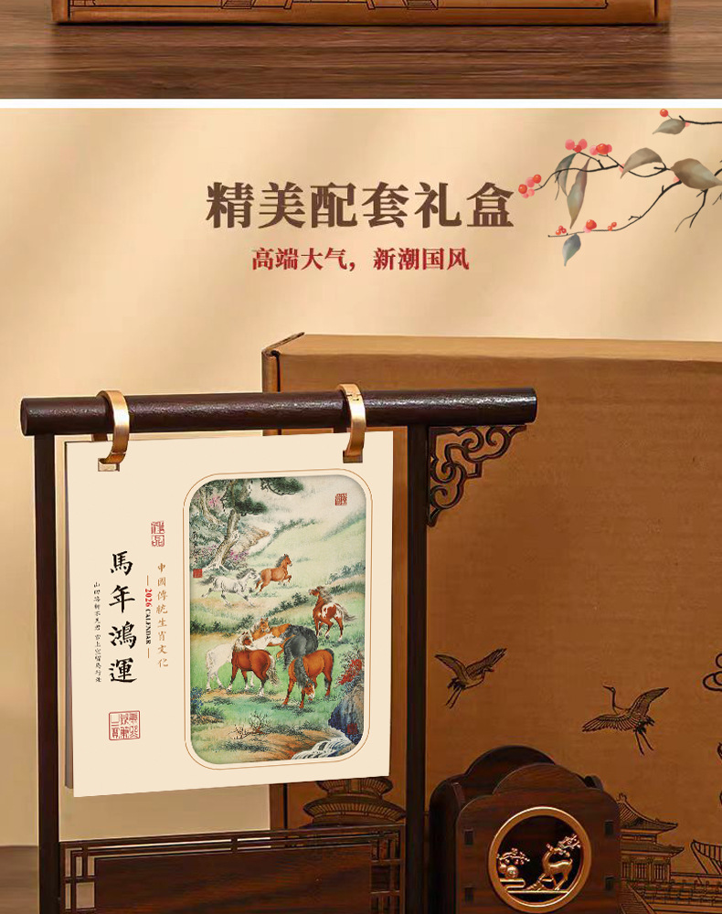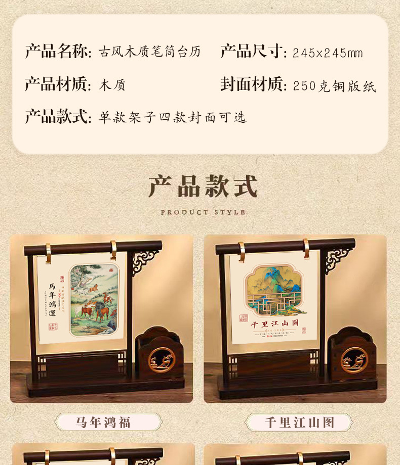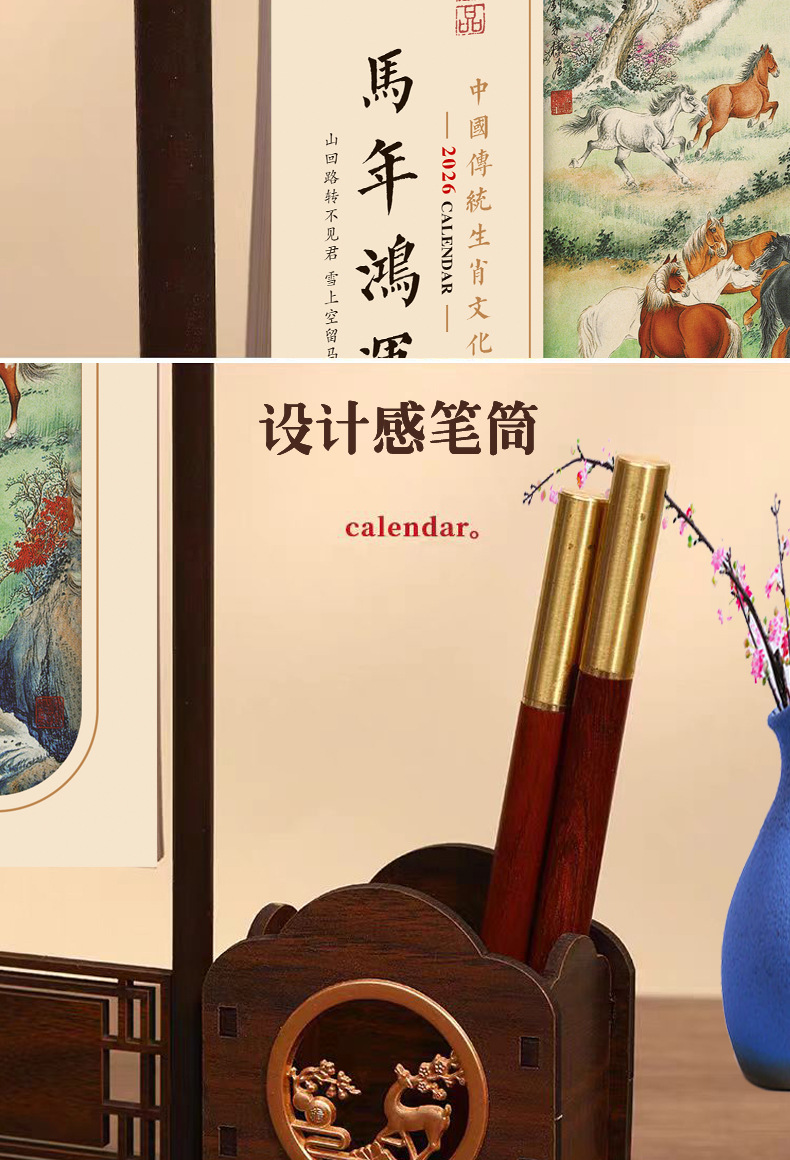 chinese style pen holder desk calendar-ma nian hongyun