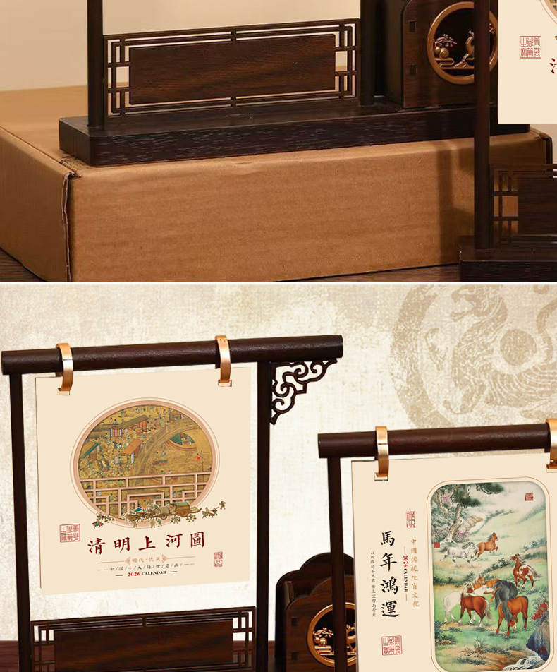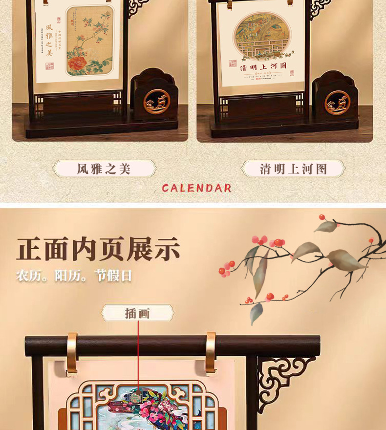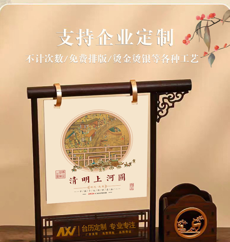chinese style pen holder desk calendar-riverside map of qingming festival