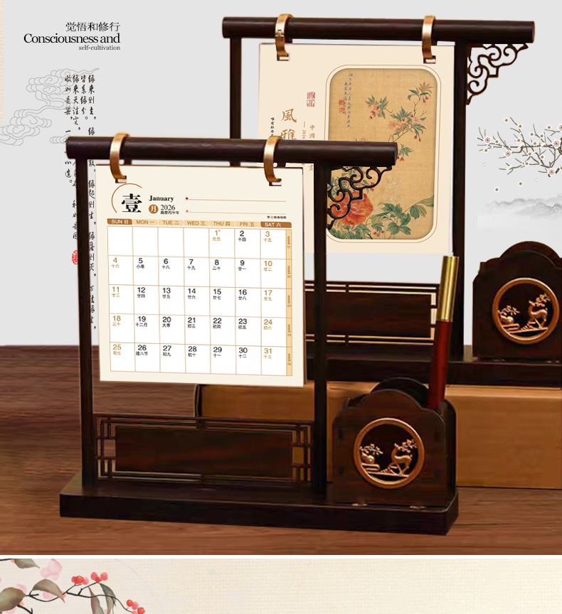 chinese style pen holder desk calendar-wind esteeman