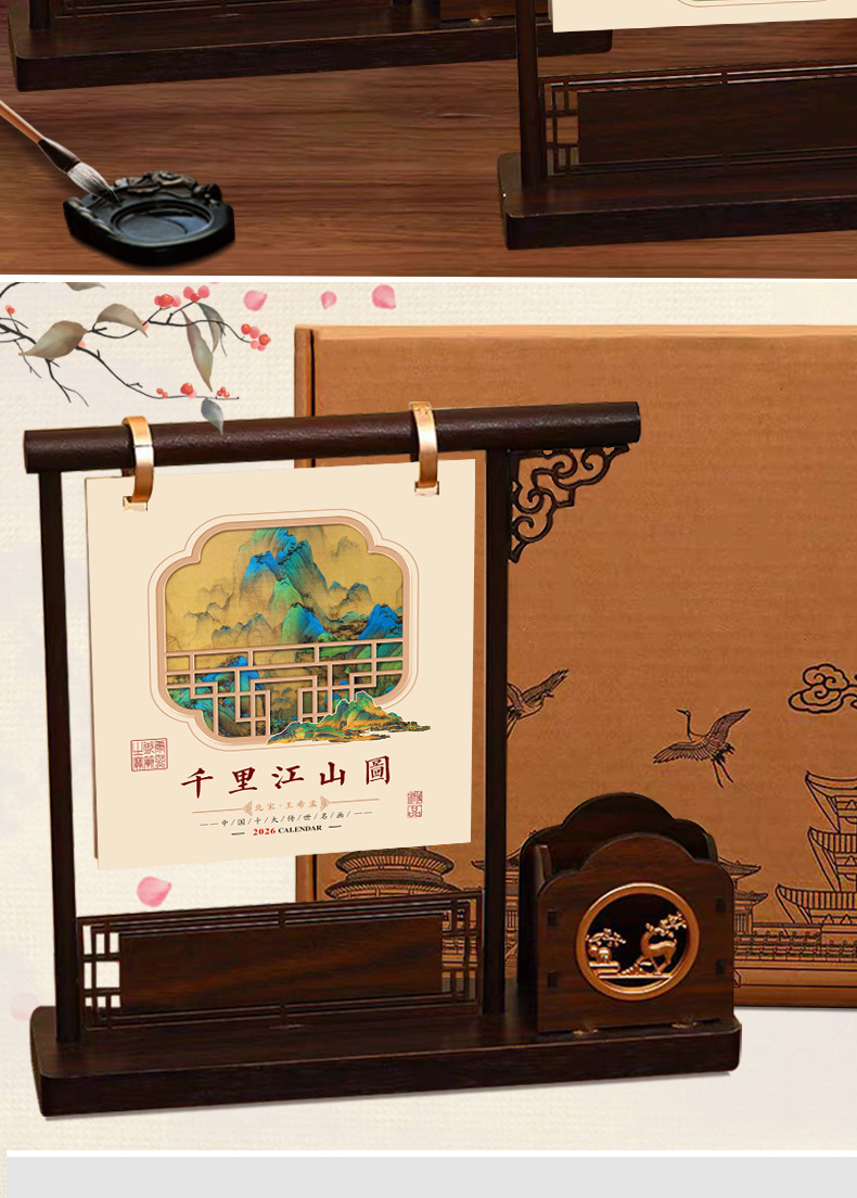chinese style pen holder desk calendar -- a panorama of rivers and mountains