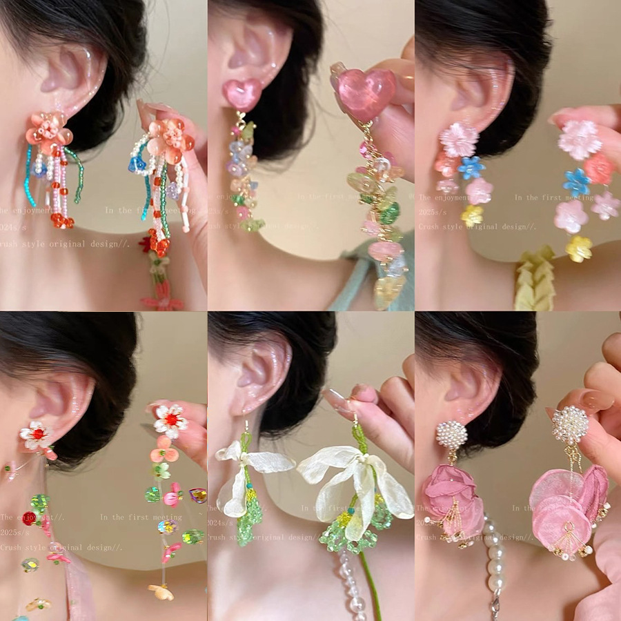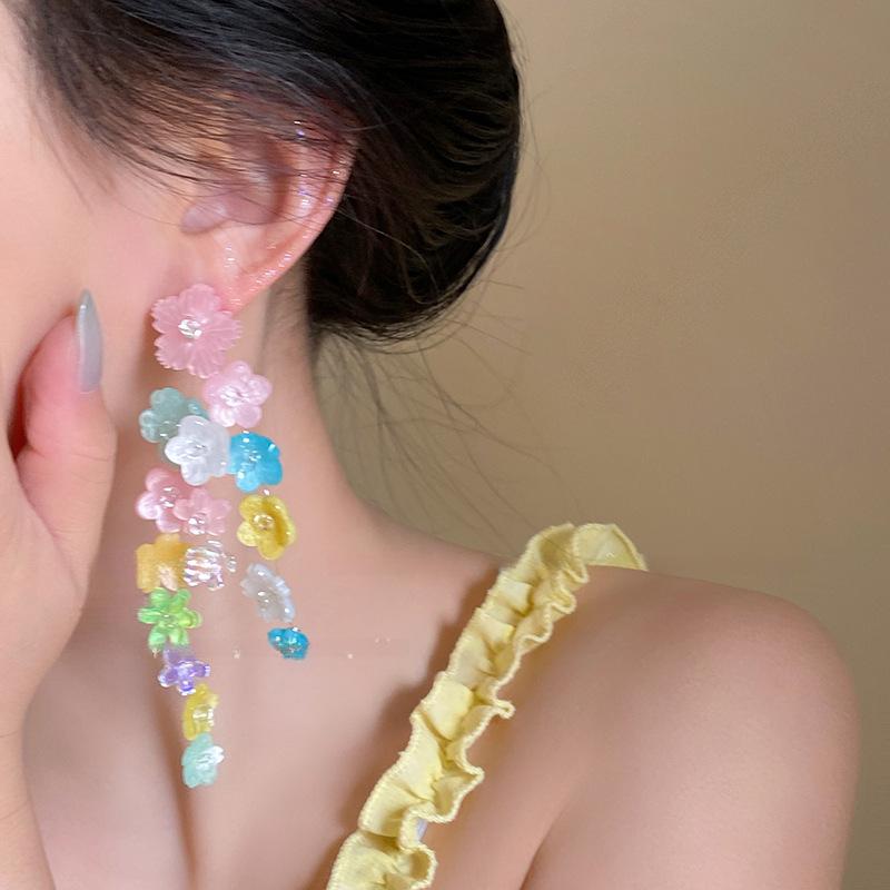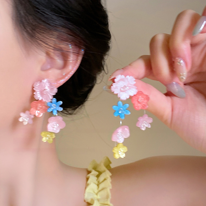 8# silver needle-acrylic-colorful flower tassel