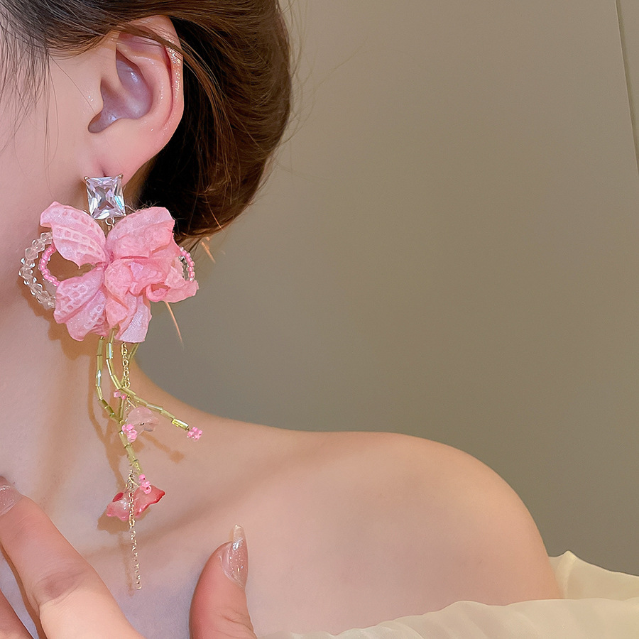 45# silver needle-pink flower tassel