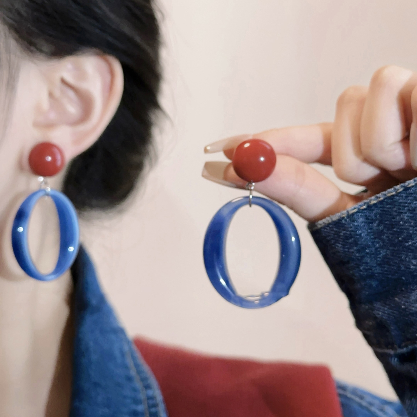 silver needle-red-blue oval